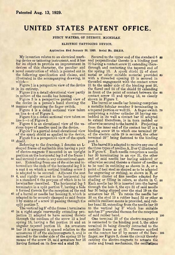 • Official Tattoo Machine US Patent Art Print - 1929 Percy Waters Antique Gun 504