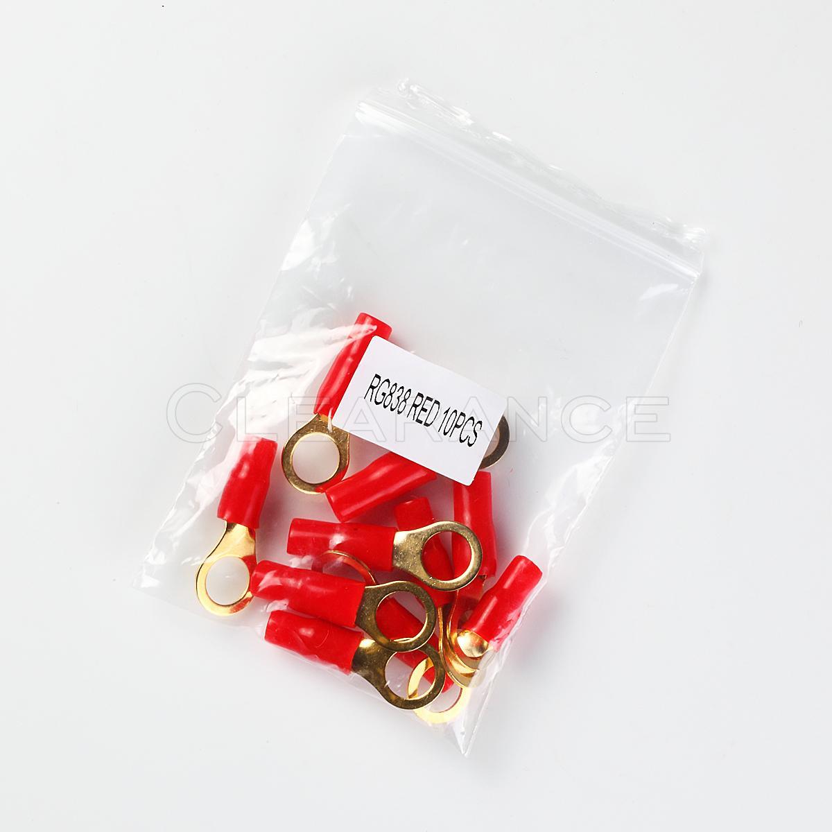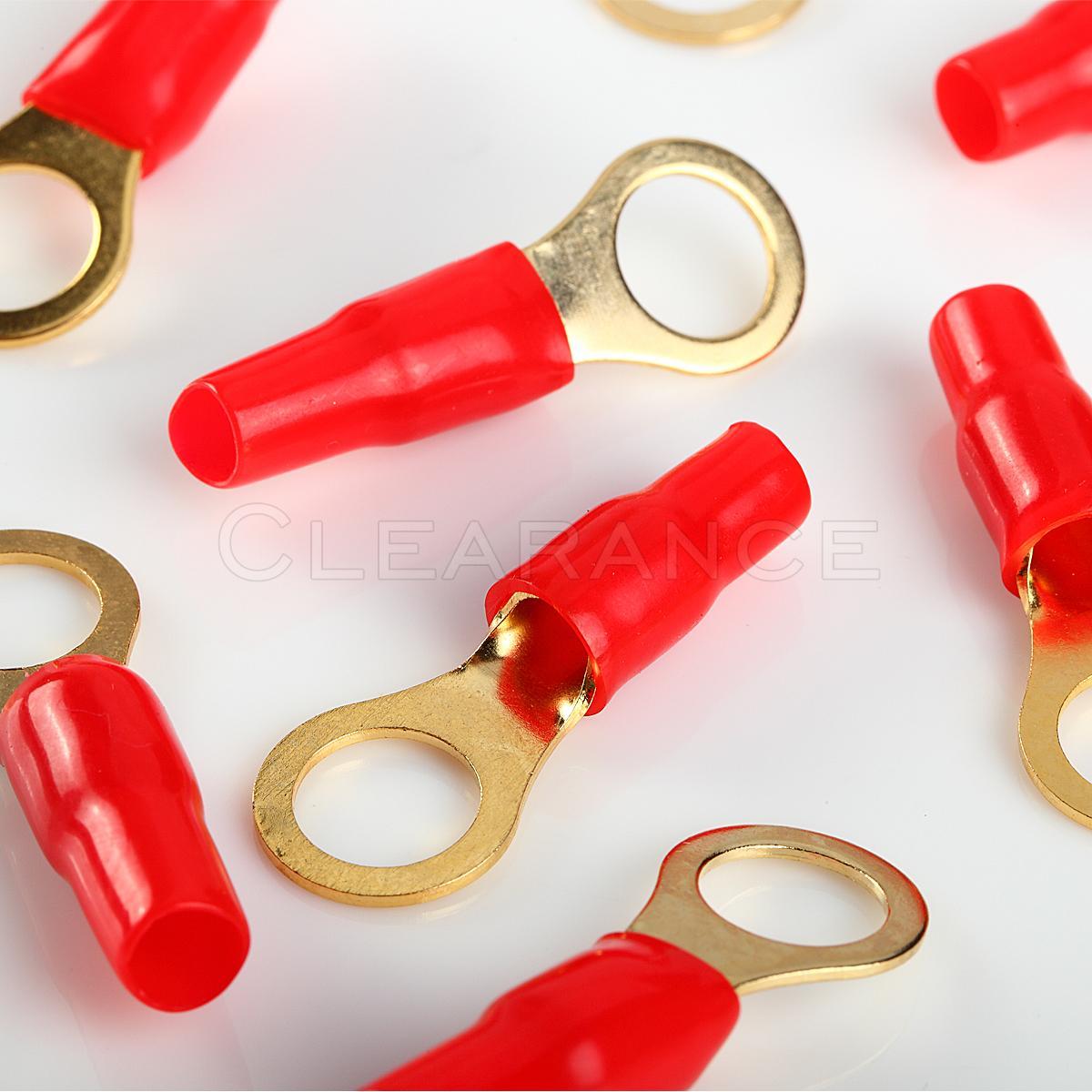 8 AWG Gauge 3/8 Wire Ring Terminal Gold Connectors Red Soft PVC Insulation 10pc