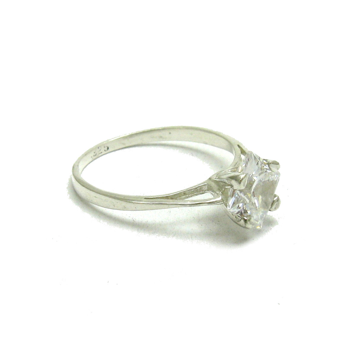 Genuine Sterling Silver Engagement Ring Solid 925 With 7x7mm Cubic Zirconia
