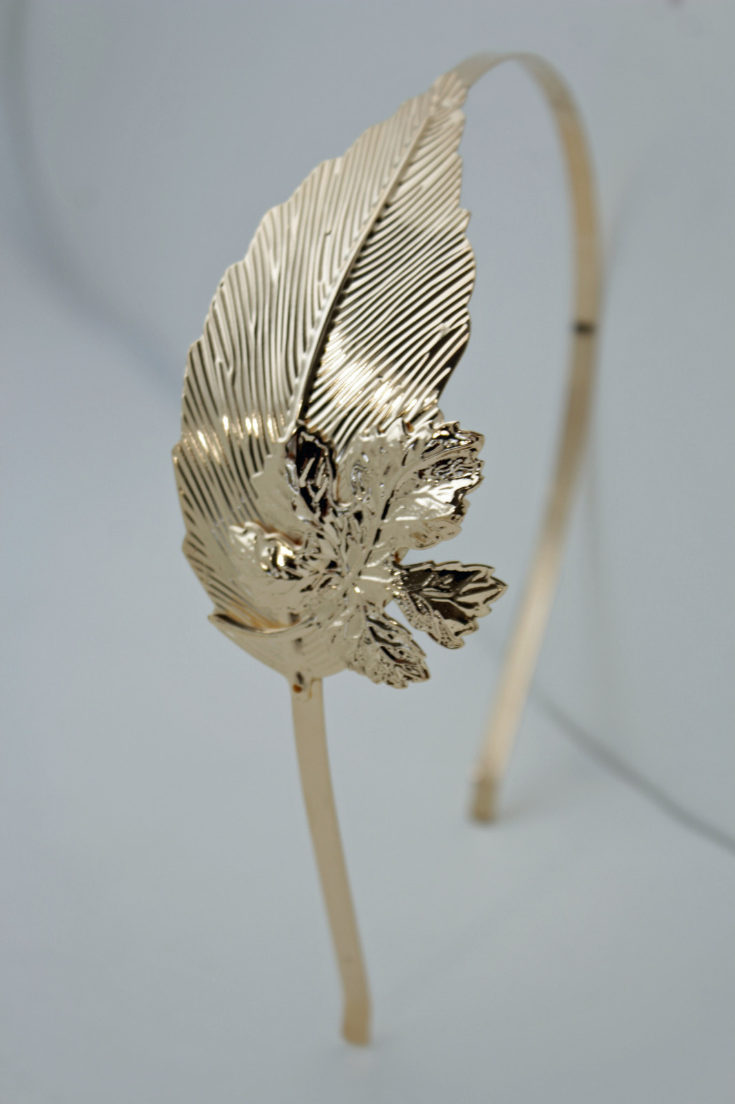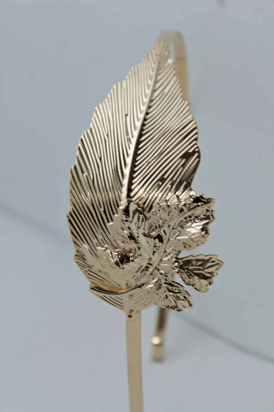 Fun Women Headband Gold Metal Long Leaf Fashion Hair Accessory Casual Look Teens