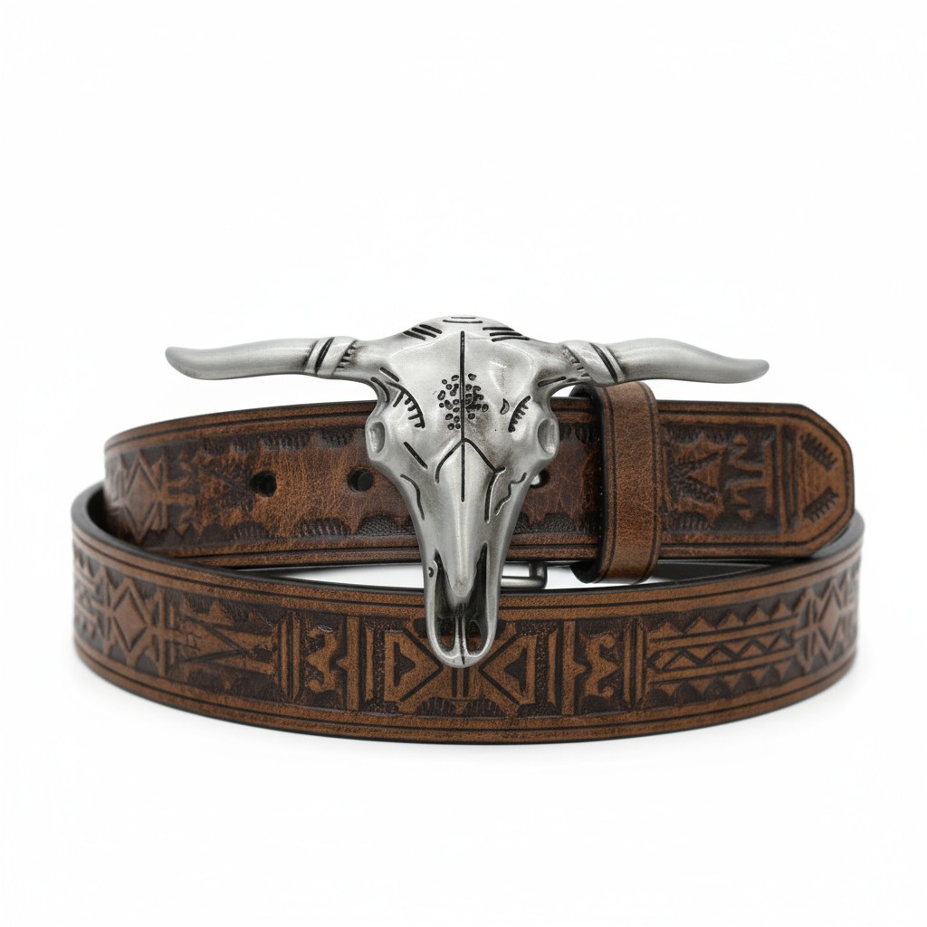 Men Western Fashion Jewelry Silver Metal Belt Buckle Long Horn Texas Cow Bull