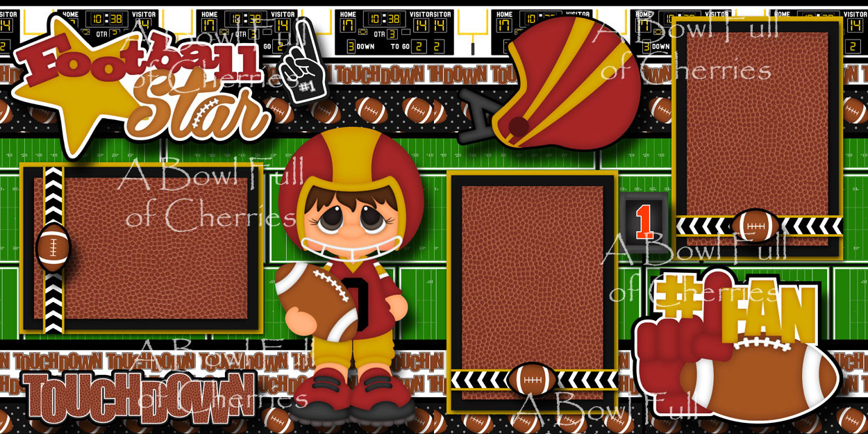 FOOTBALL 2 premade scrapbook pages paper printed for album layout sports CHERRY