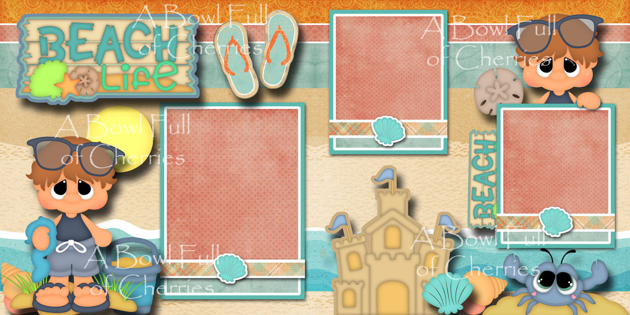 BEACH LIFE boy 2 premade scrapbooking pages paper piecing printed BY CHERRY