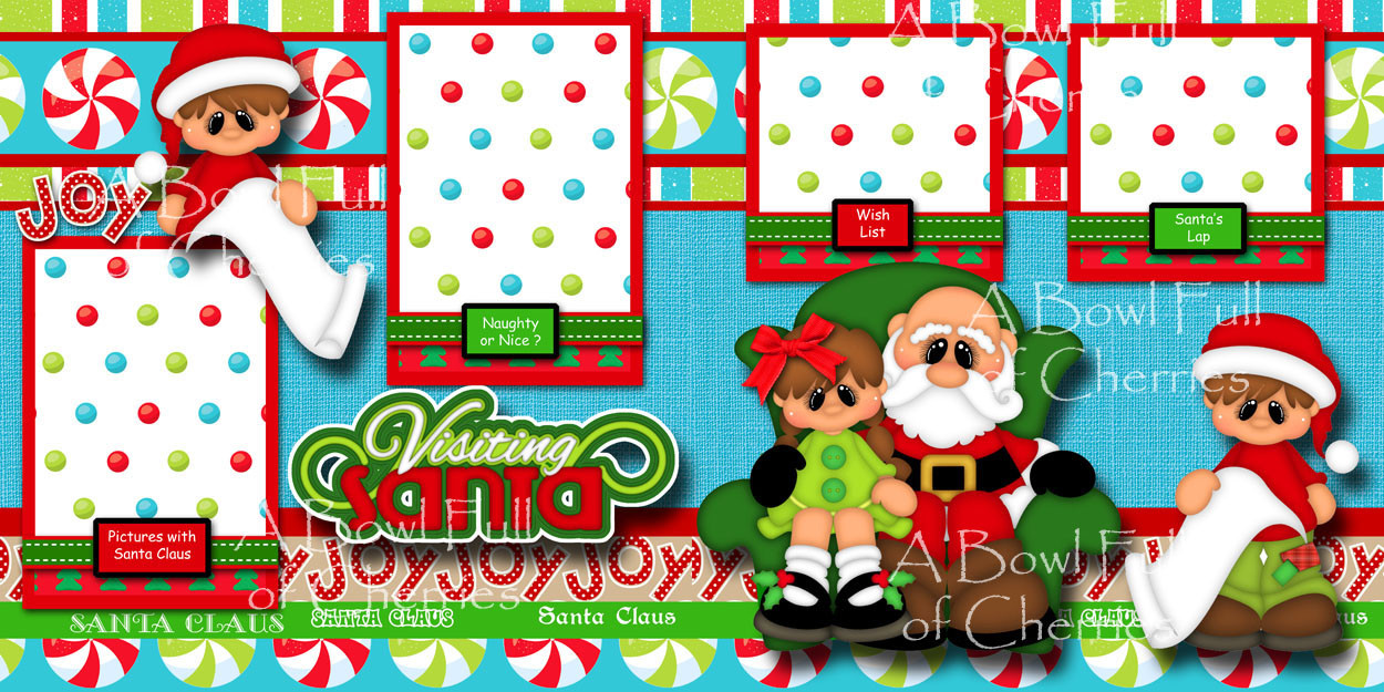 VISITING SANTA CHRISTMAS 2 premade scrapbook pages paper printed layout CHERRY