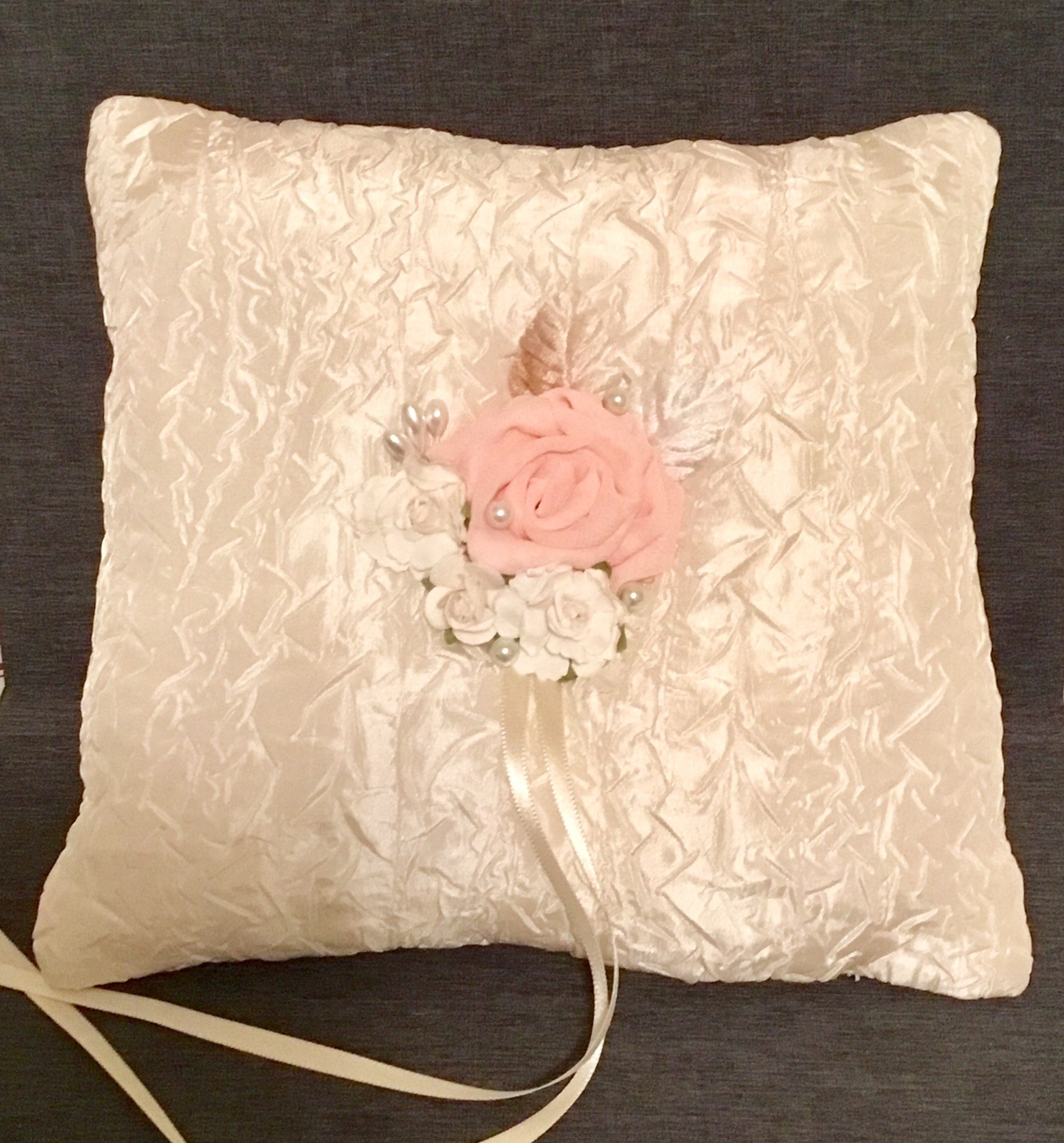 Handmade Ring Bearer Pillow in Ivory and dark rose, Wedding Ring Pillow
