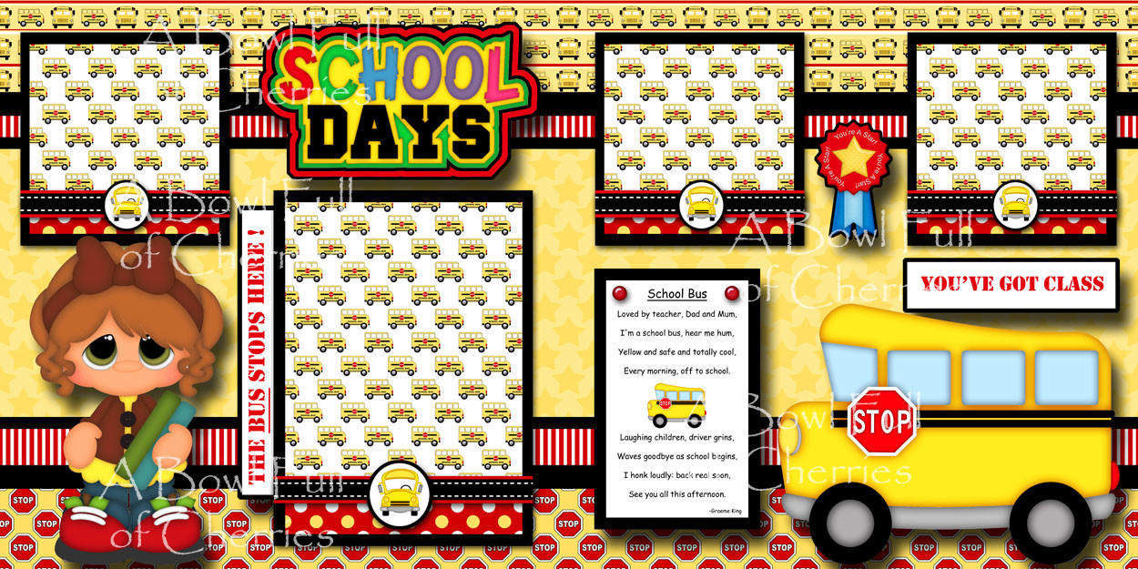 SCHOOL DAYS 2 PREMADE SCRAPBOOK PAGES Paper Printed layout GIRL layout CHERRY