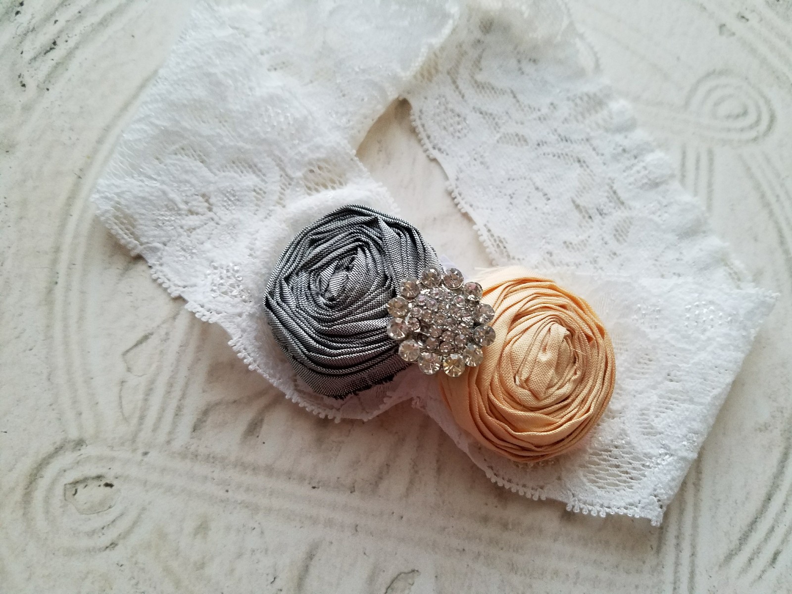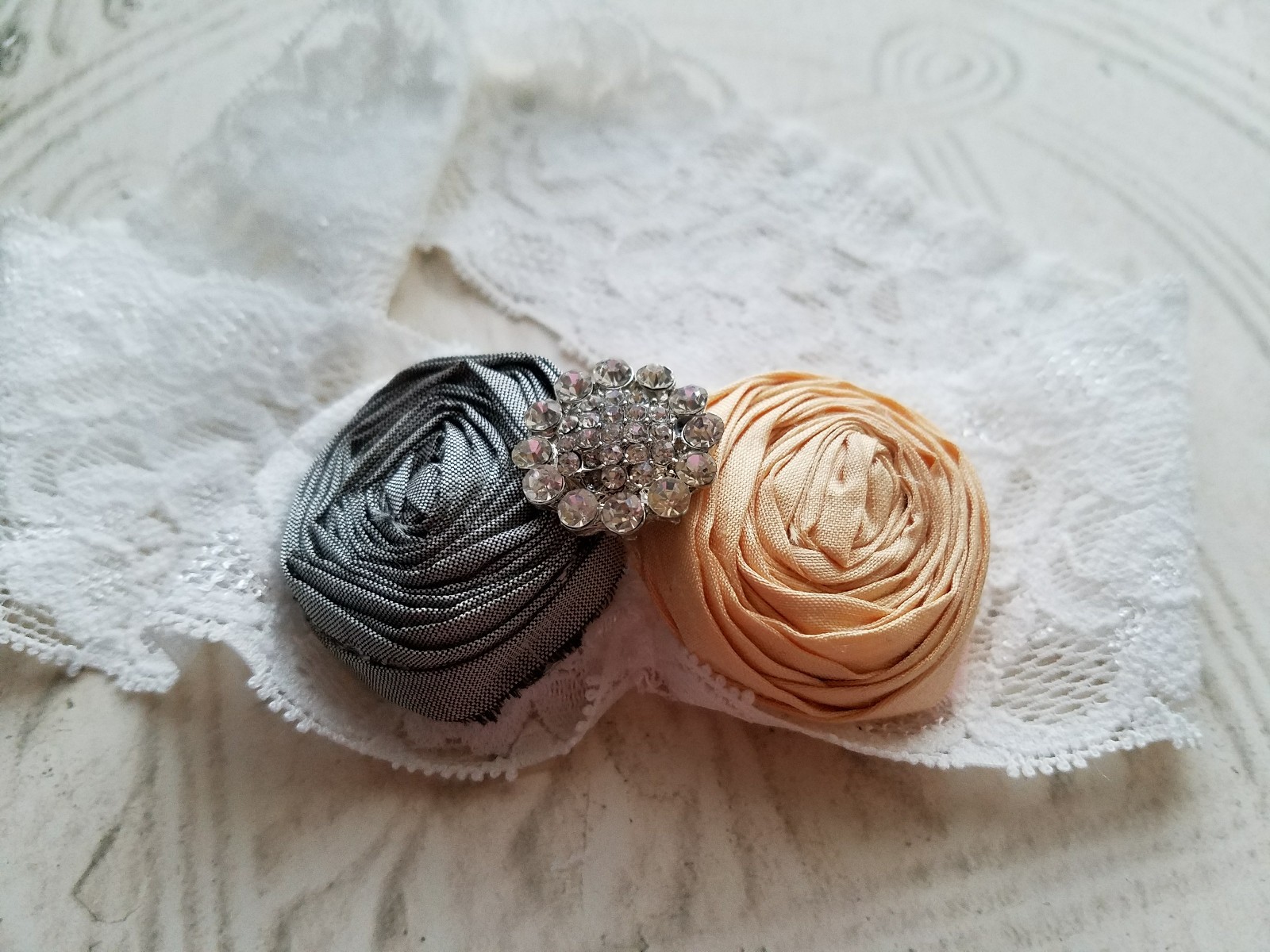 Peach/Gray Single Toss Bridal Garter Rhinestone Garter, Wedding Handmade
