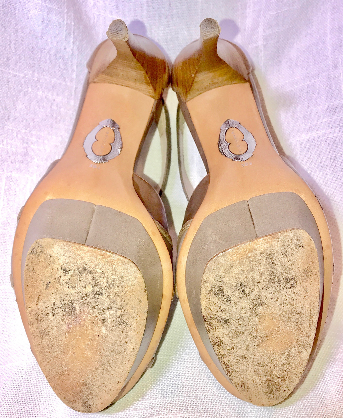 как выглядит ELIE TAHARI -T-Strap Platform Caged Sandals -Taupe,Tan Camel w/ Snakeskin 81/2 фото