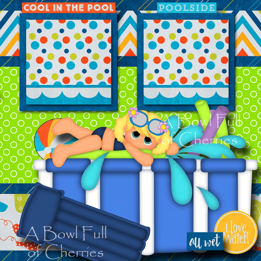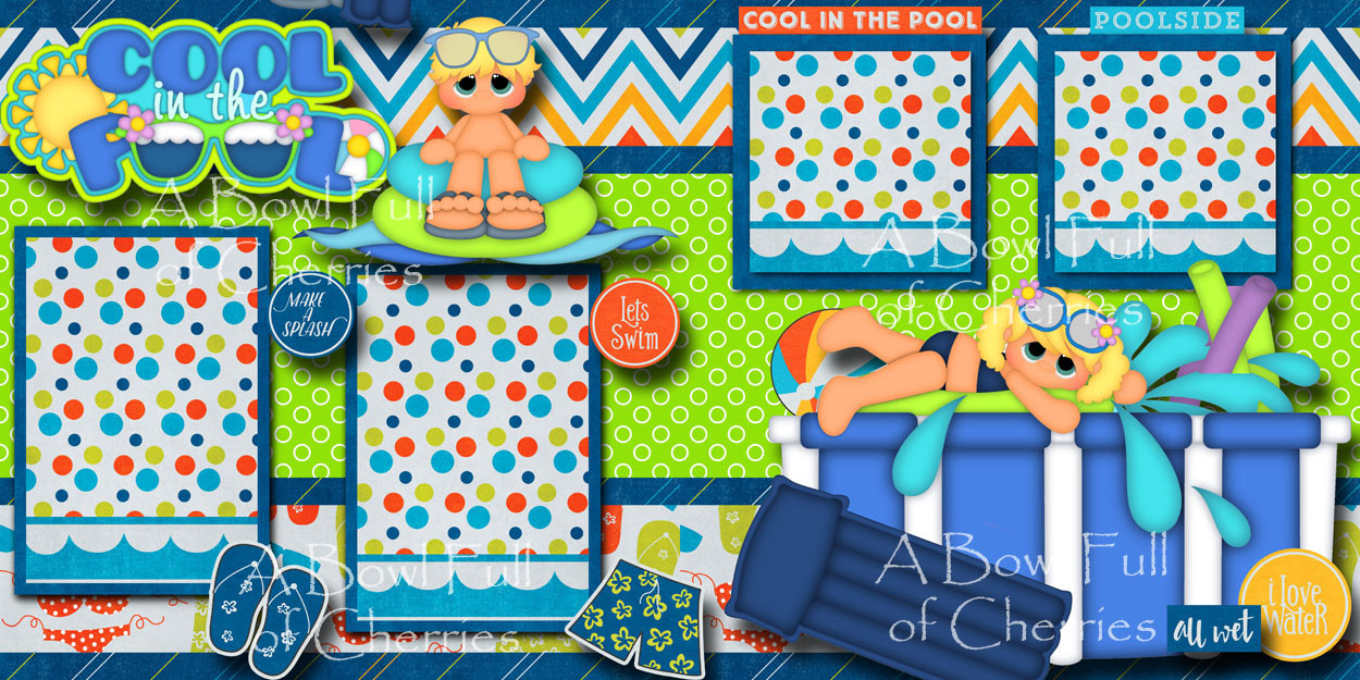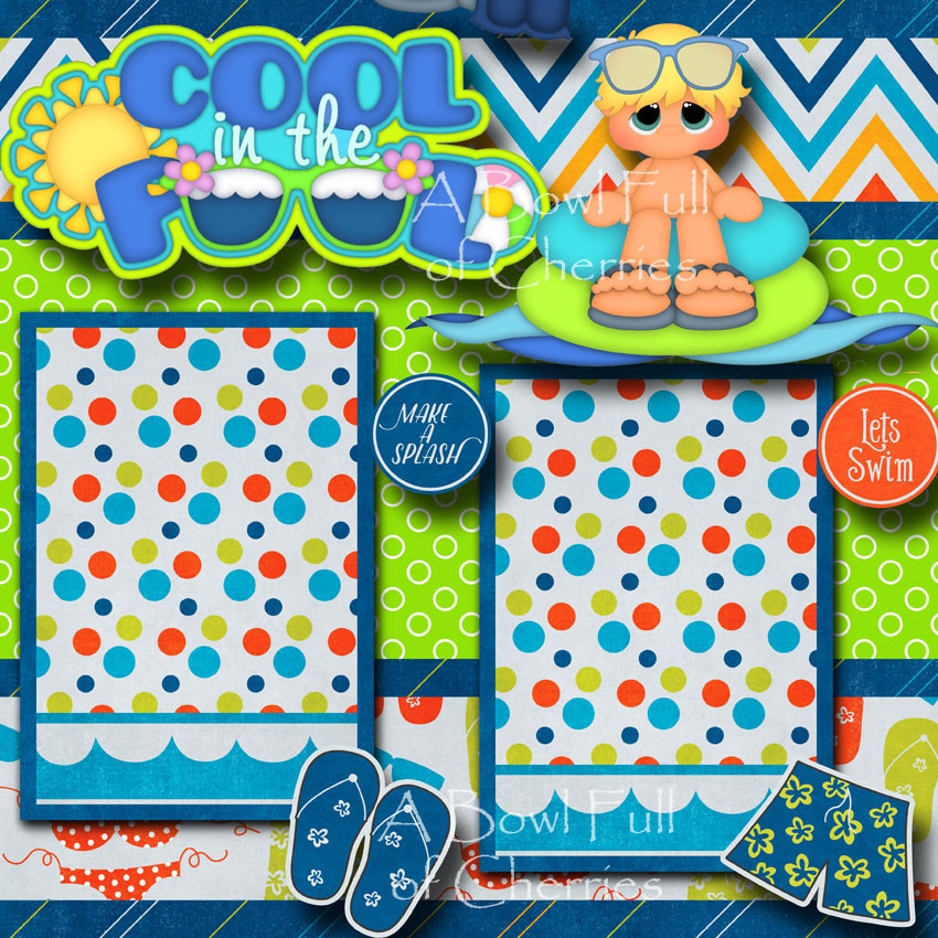 COOL IN THE POOL 2 premade scrapbook pages Paper printed vacation BY CHERRY