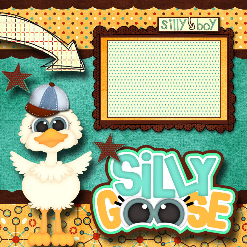 SILLY GOOSE boy 2 premade scrapbook pages paper 12X12 layout baby CHERRY 0293