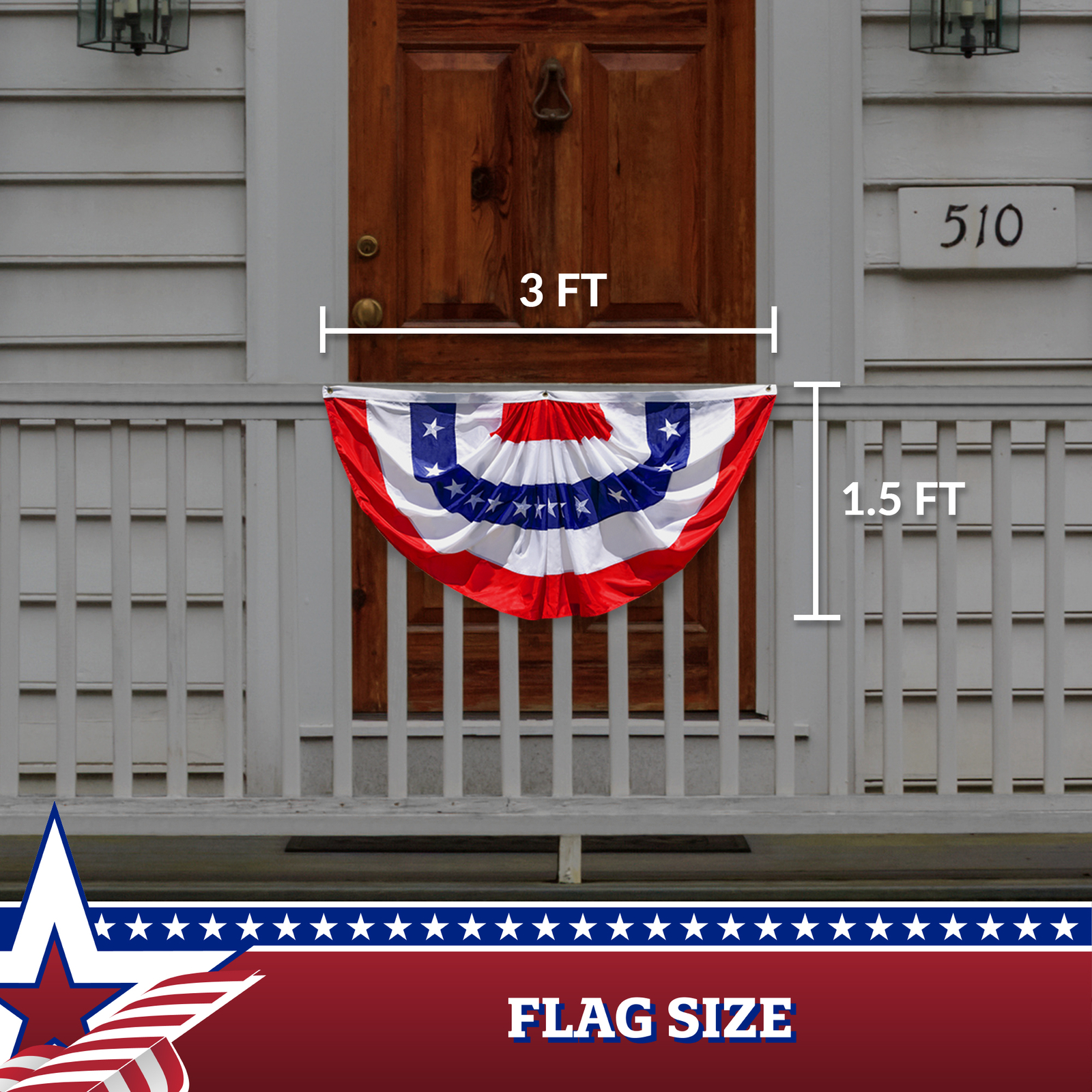 G128 - USA Pleated Fan Flag, 3x6: Embroidered, USA Bunting Decoration Flags