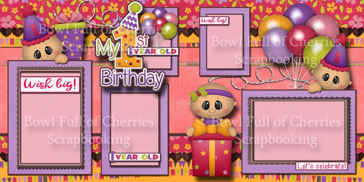 BABY'S 1ST BIRTHDAY GIRL 2 premade scrapbook pages paper layout CHERRY 0351