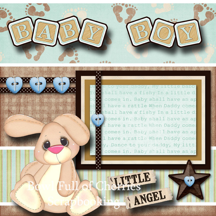 BABY BOY 2 premade scrapbook pages paper piecing layout 12X12 album CHERRY 0084