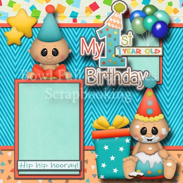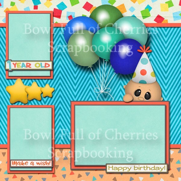 1ST BIRTHDAY baby boy 2 premade scrapbook pages paper printed layout CHERRY 0083
