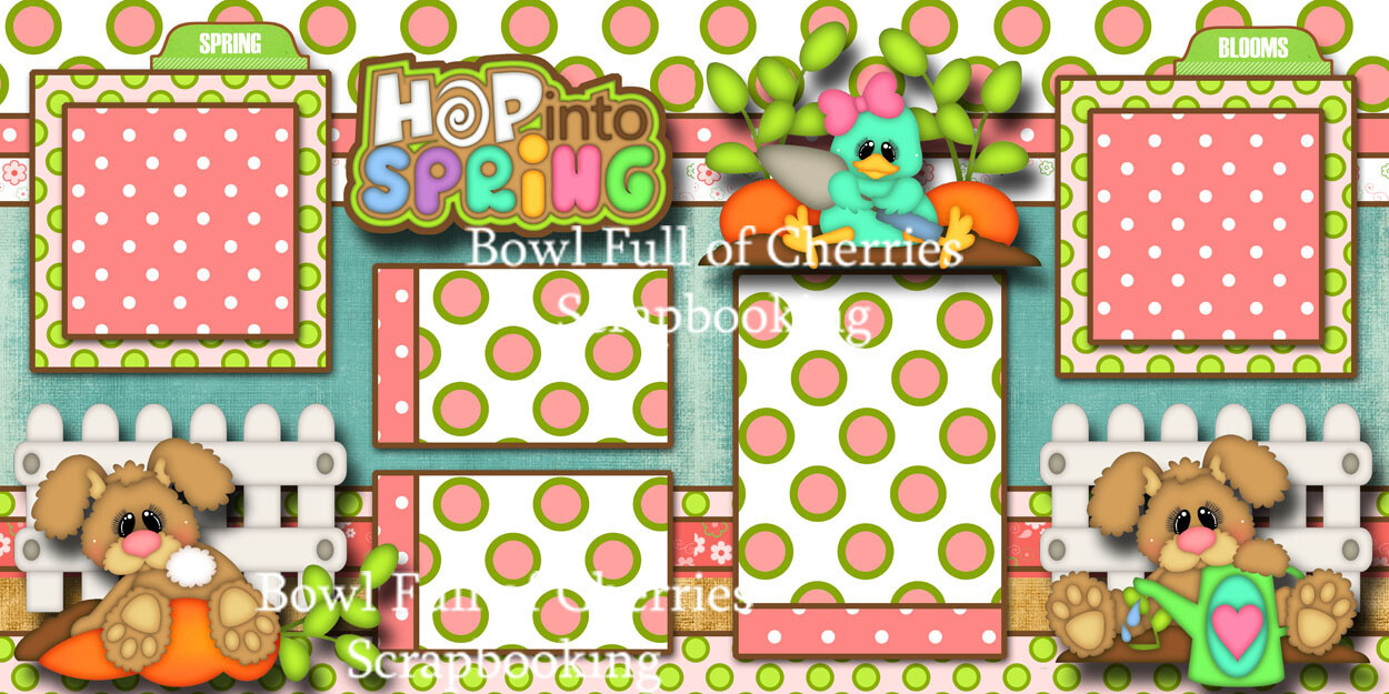 HOP INTO SPRING 2 premade scrapbook pages paper piecing layout easter CHERRY
