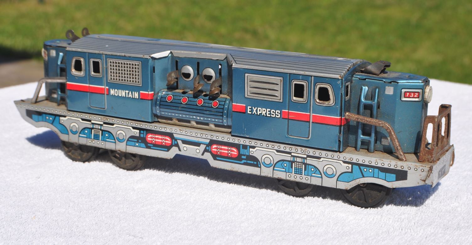 как выглядит 1950-60s Japan Japanese MOUNTAIN EXPRESS Tin Train Toy 28 cm Long Fine Details фото