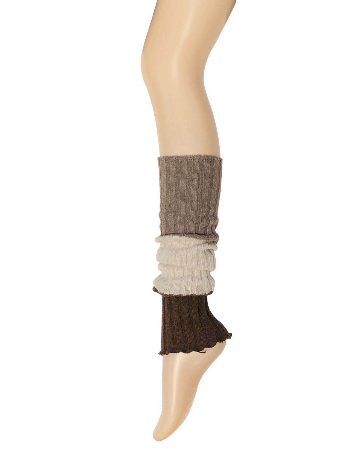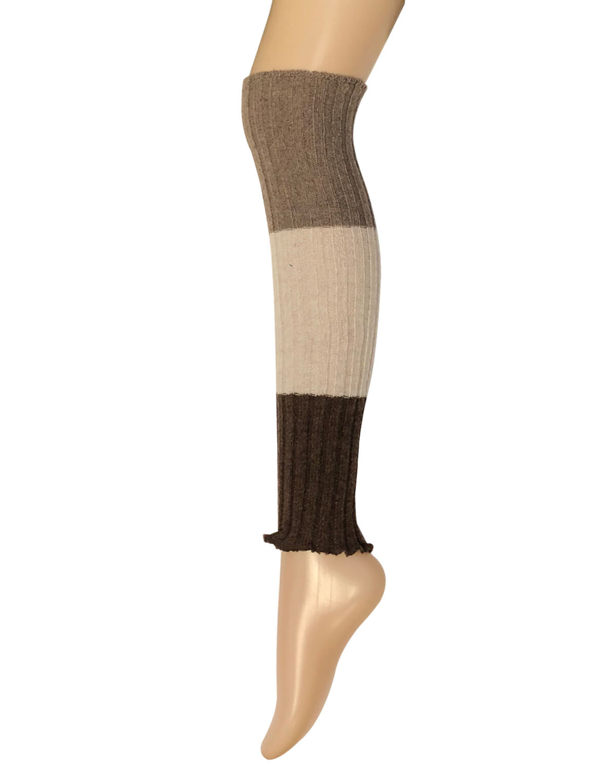 Wrapables Women's Tri-Colored Ribbed Leg Warmers, Brown/Beige/Mocha