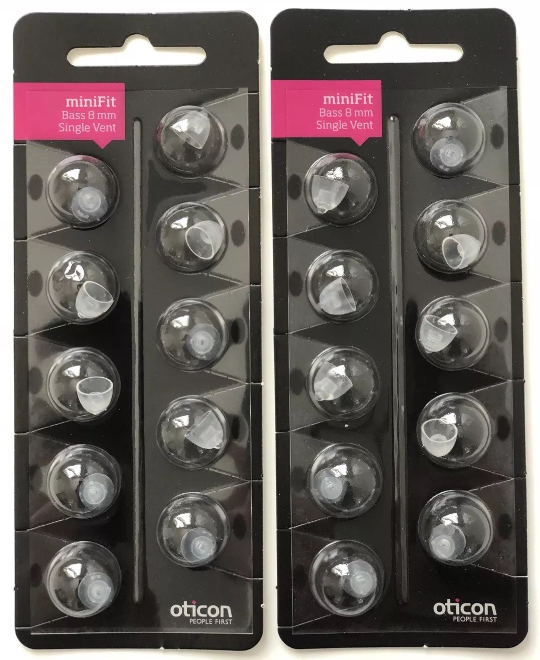 2 Pack Oticon miniFit 8mm Bass Single Vent Dome For Hearing Aids. 20 Domes Total