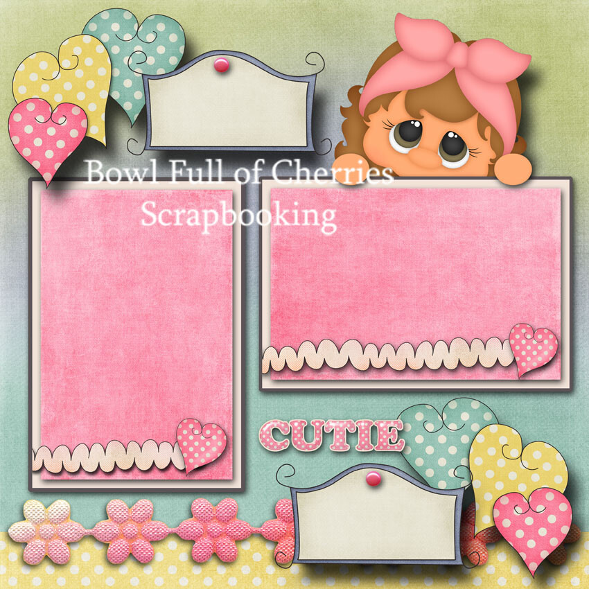CUTE STUFF girl 2 pre-made scrapbook pages paper printed layout CHERRY 0056