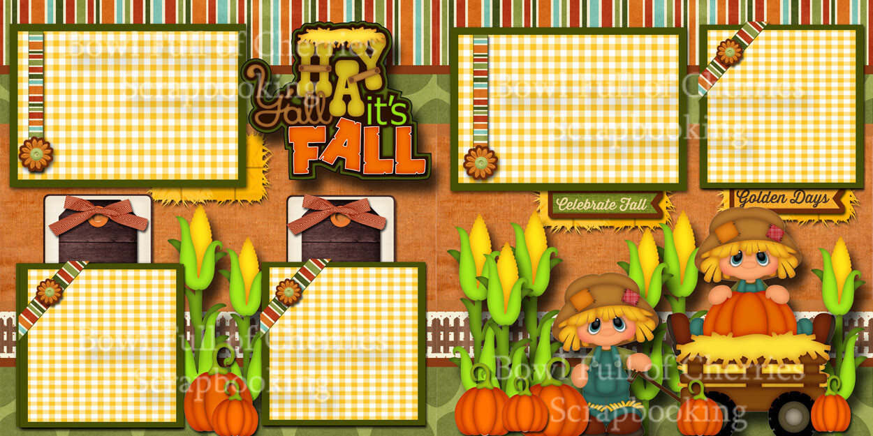 FALL AUTUMN 2 premade pages paper piecing layout corn maze printed CHERRY 0021