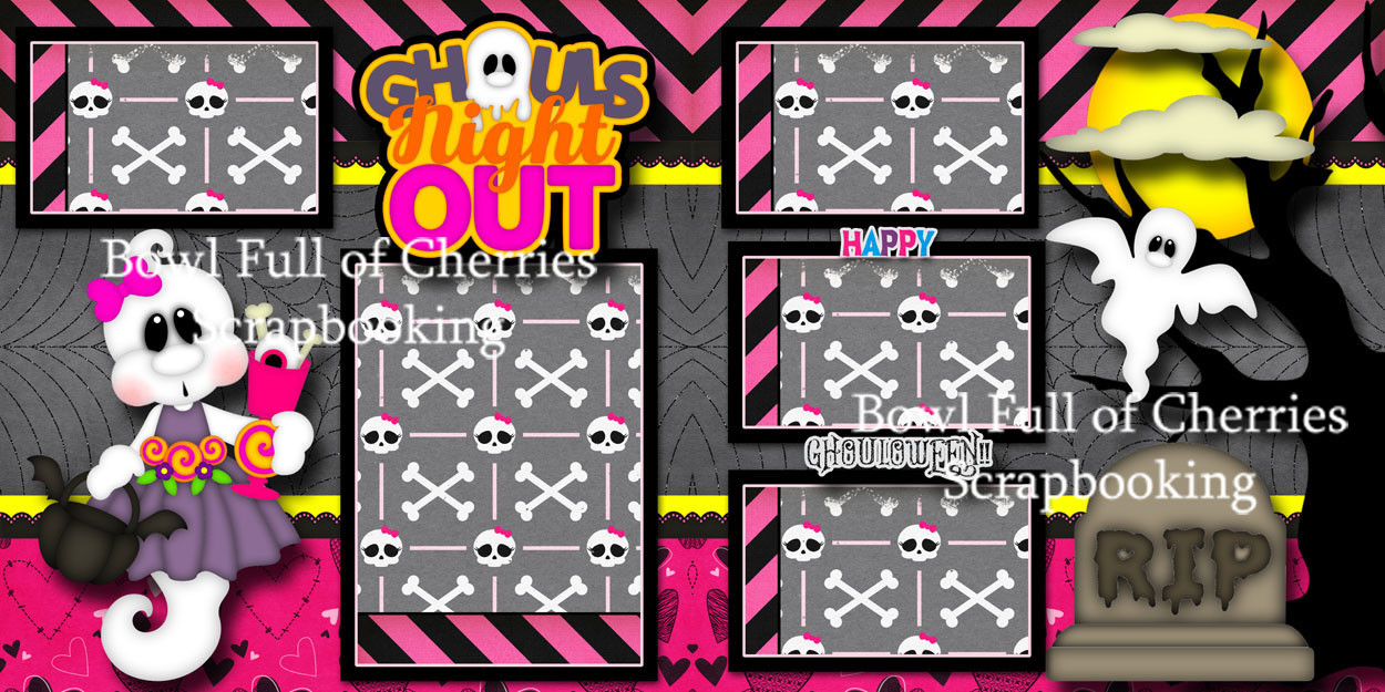 GHOULS NIGHT OUT 2 pre-made pages paper piecing layout Halloween BY CHERRY 0024