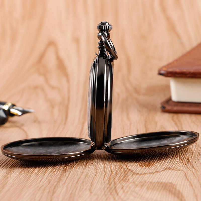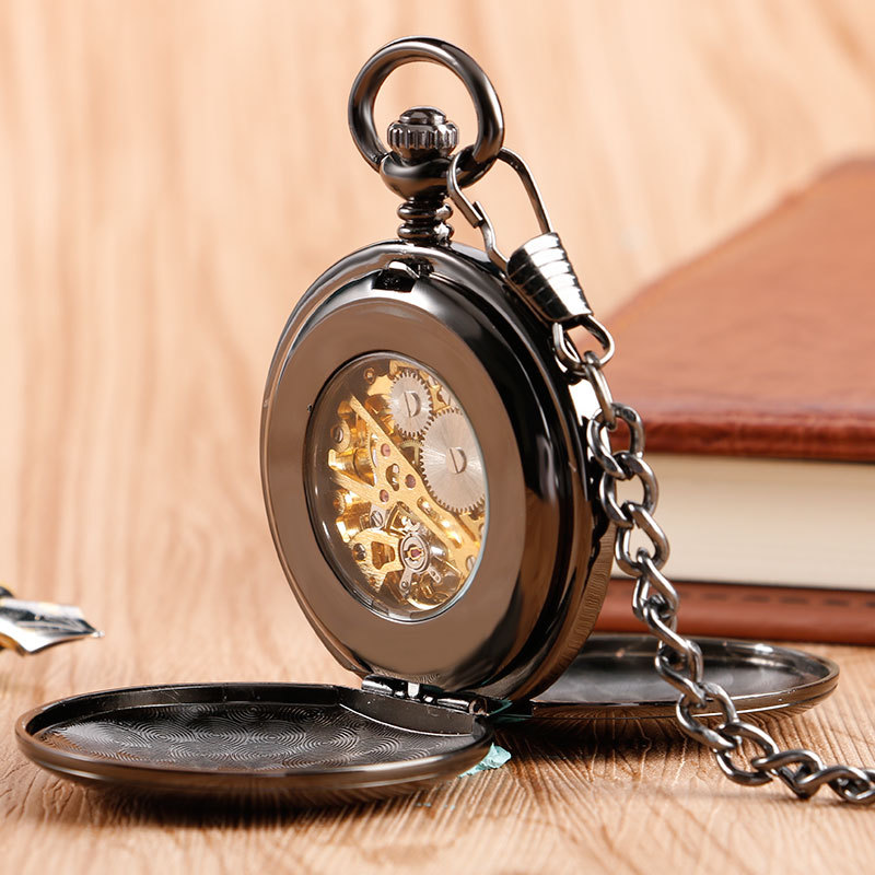 Steampunk Double Hunter Fob Pendant Mechanical Hand Wind Pocket Watch Black