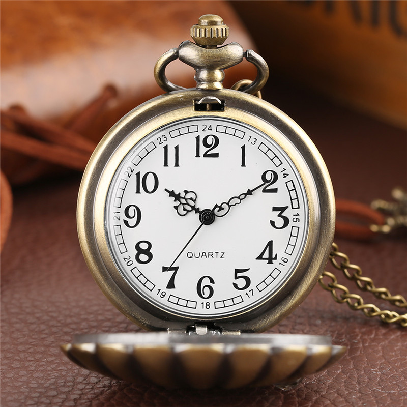Retro Shell Rhinestones Quartz Pocket Watch Classic Necklace Pendant Gift