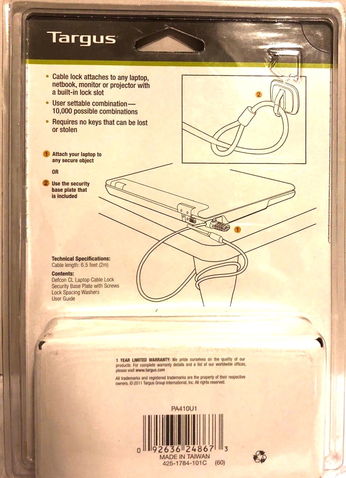 как выглядит Targus Defcon CL Laptop Computer Security Cable Lock Combination New Sealed фото