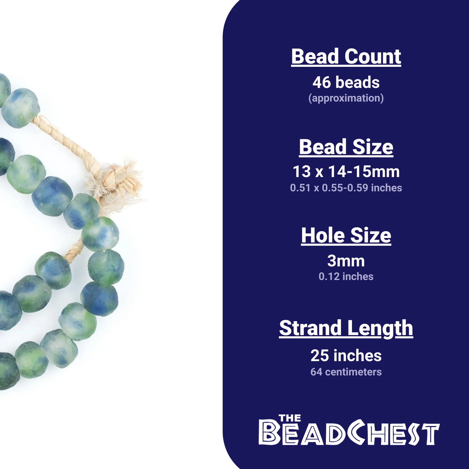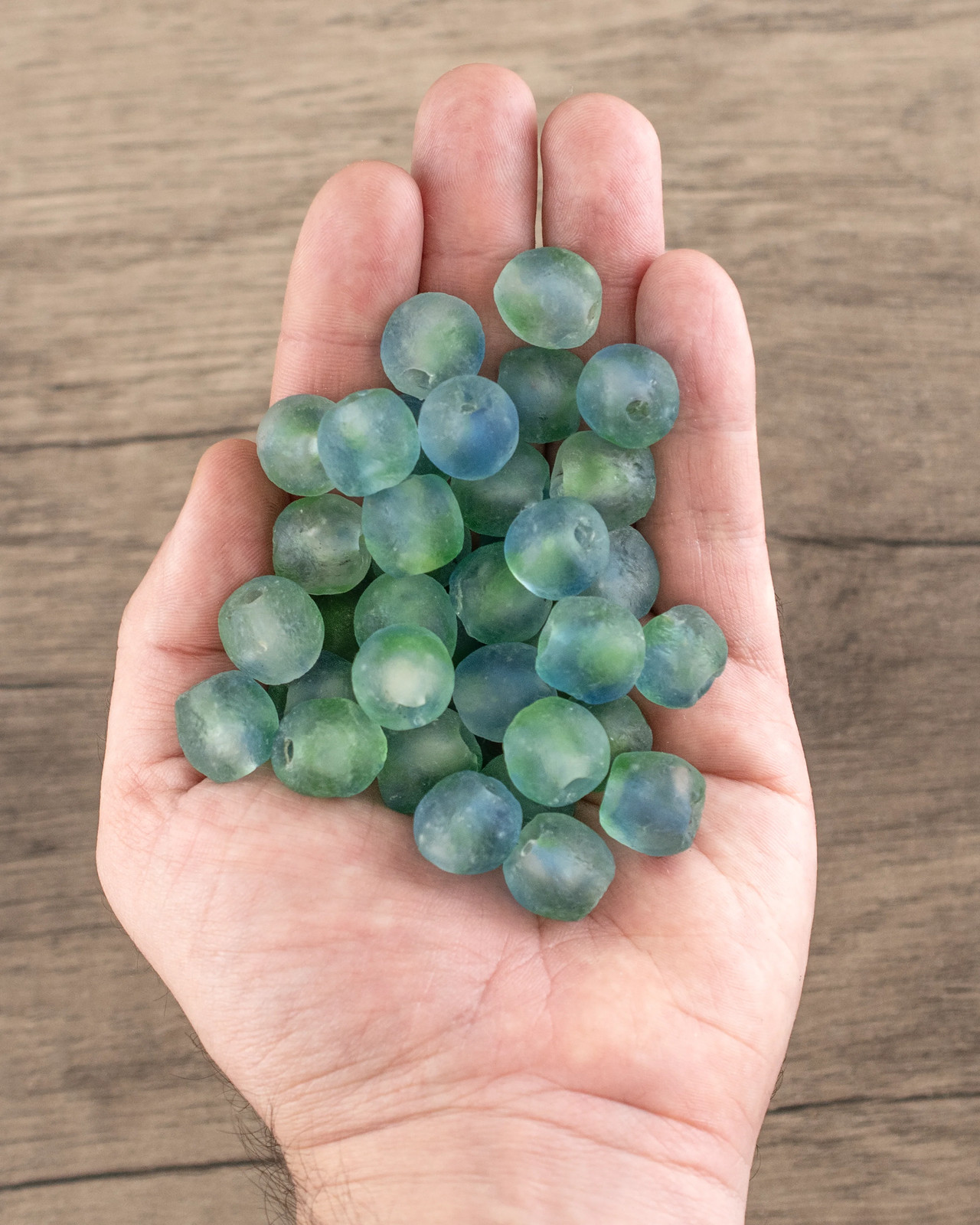 Blue, Green, White Recycled Glass Beads 14mm Ghana African Sea Glass Multicolor
