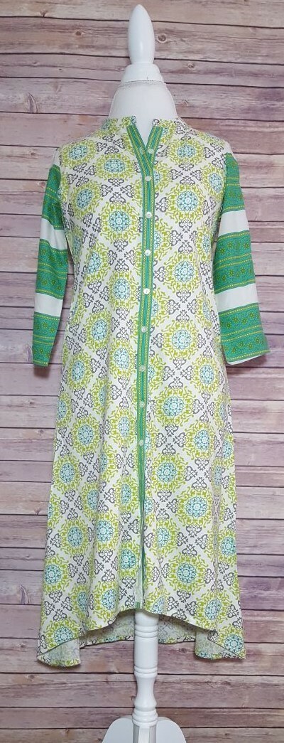 Green Printed Rayon Kurti. Size Small. Free Shipping.
