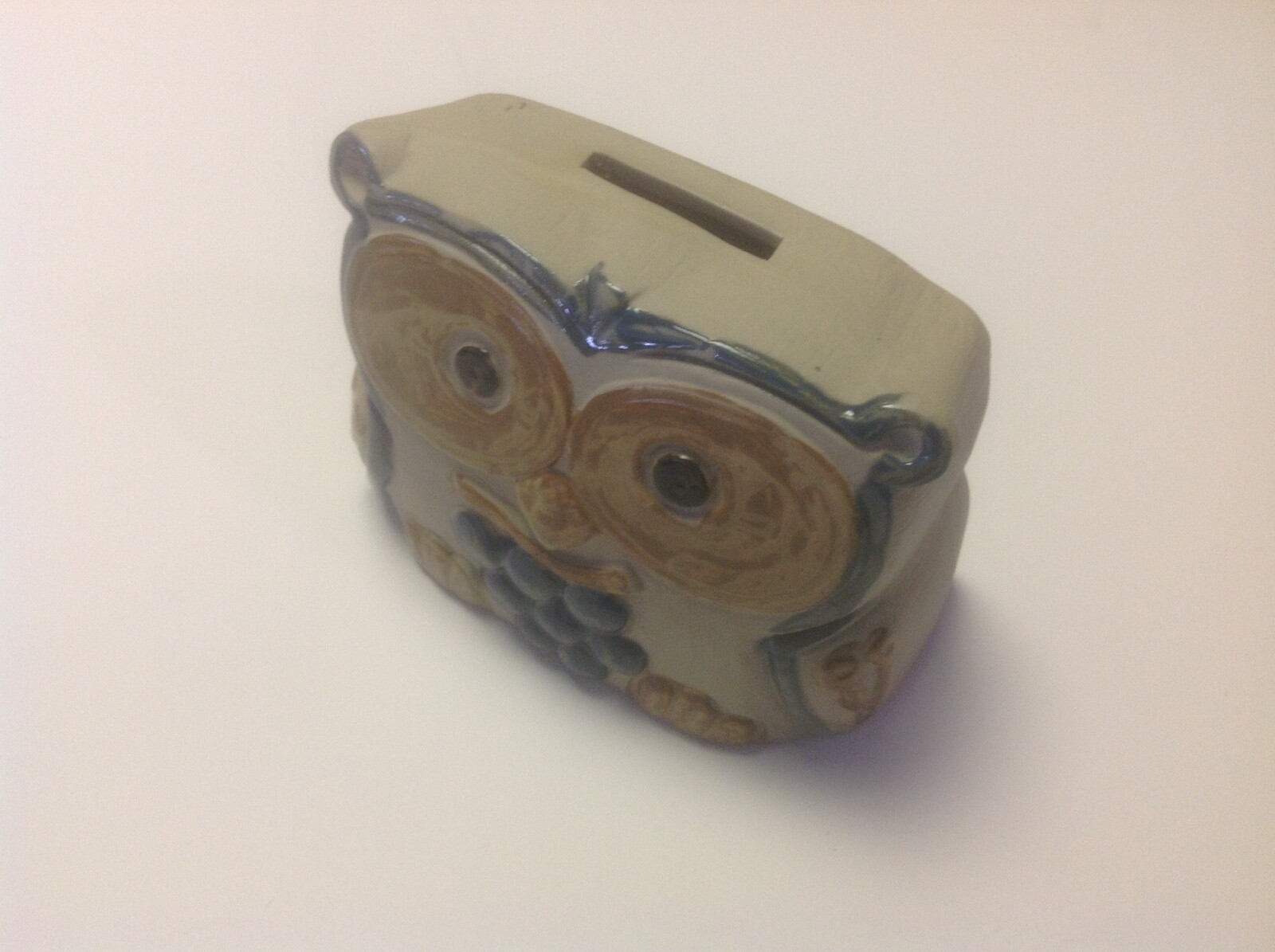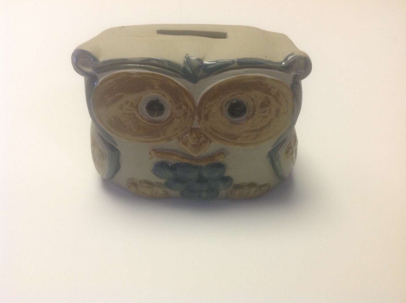 • Vintage 1973 Hand Painted Ceramic Owl Piggy Bank Signed