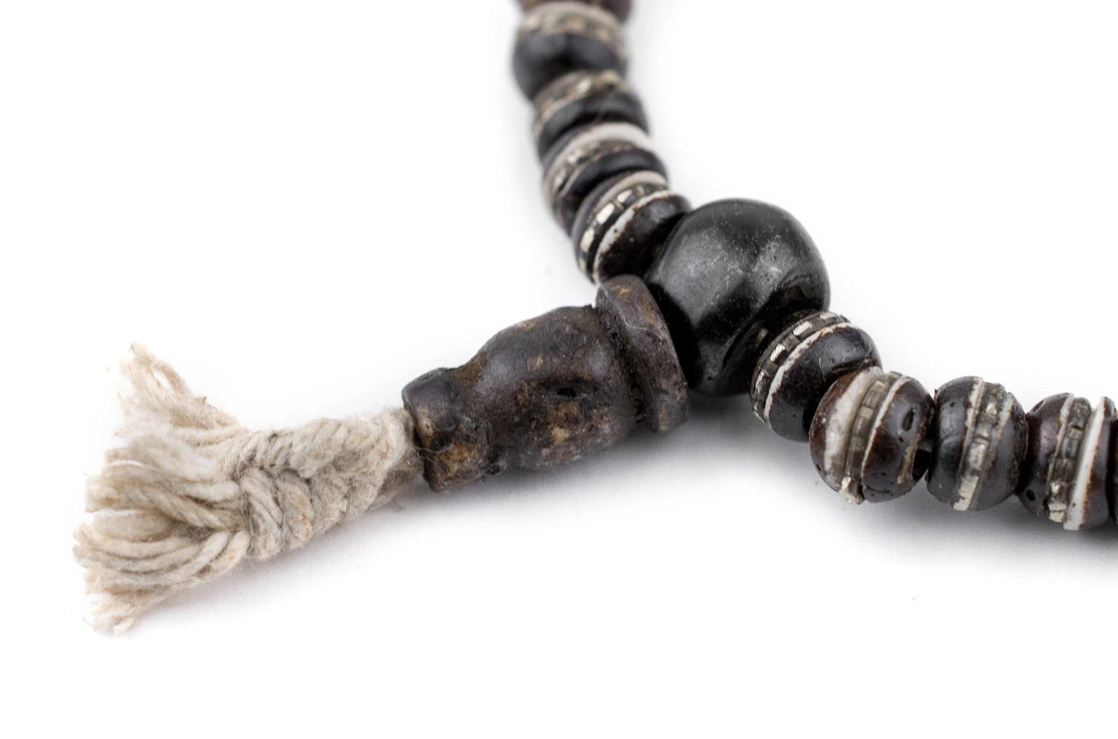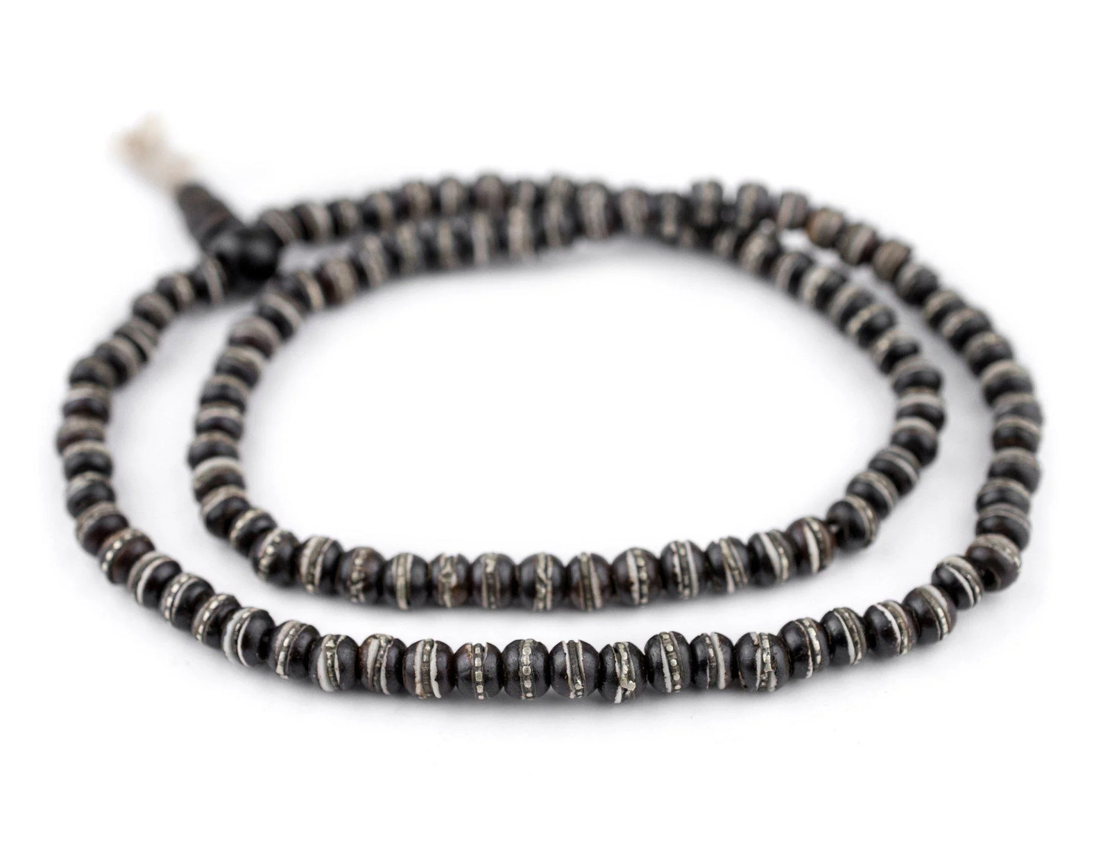 Silver-Inlaid Black Bone Mala Beads 6mm Nepal Round Large Hole 22 Inch Strand