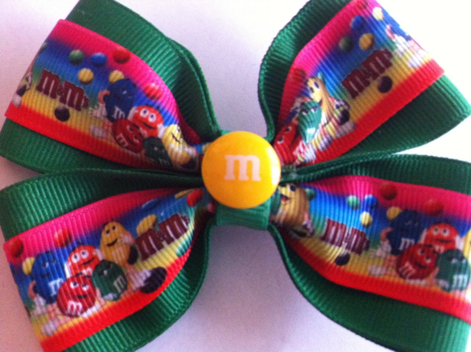 как выглядит Girls Hair Bow 4" Wide M Ms Ribbon Green Grosgrain Flatback French Barrette фото