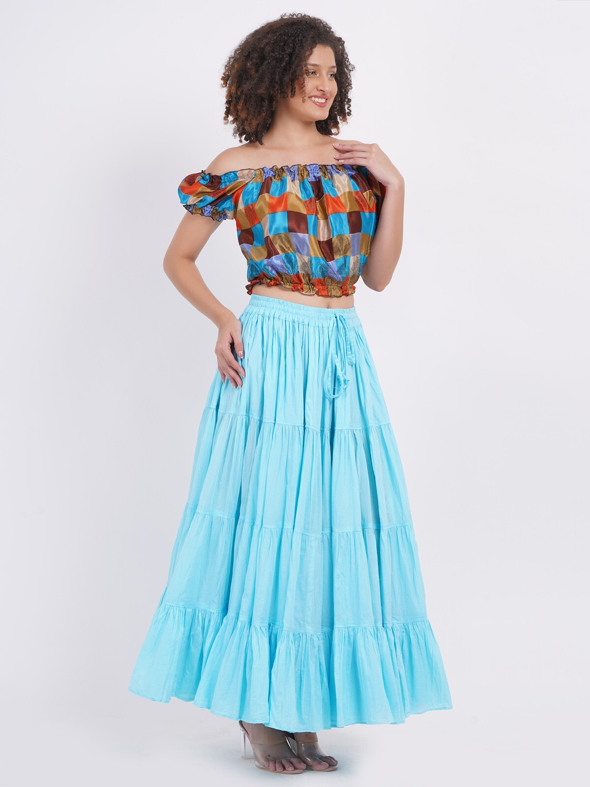 Wevez 25 Yard Gypsy Belly dance Tribal Sky Blue Long maxi Skirt With drawstring