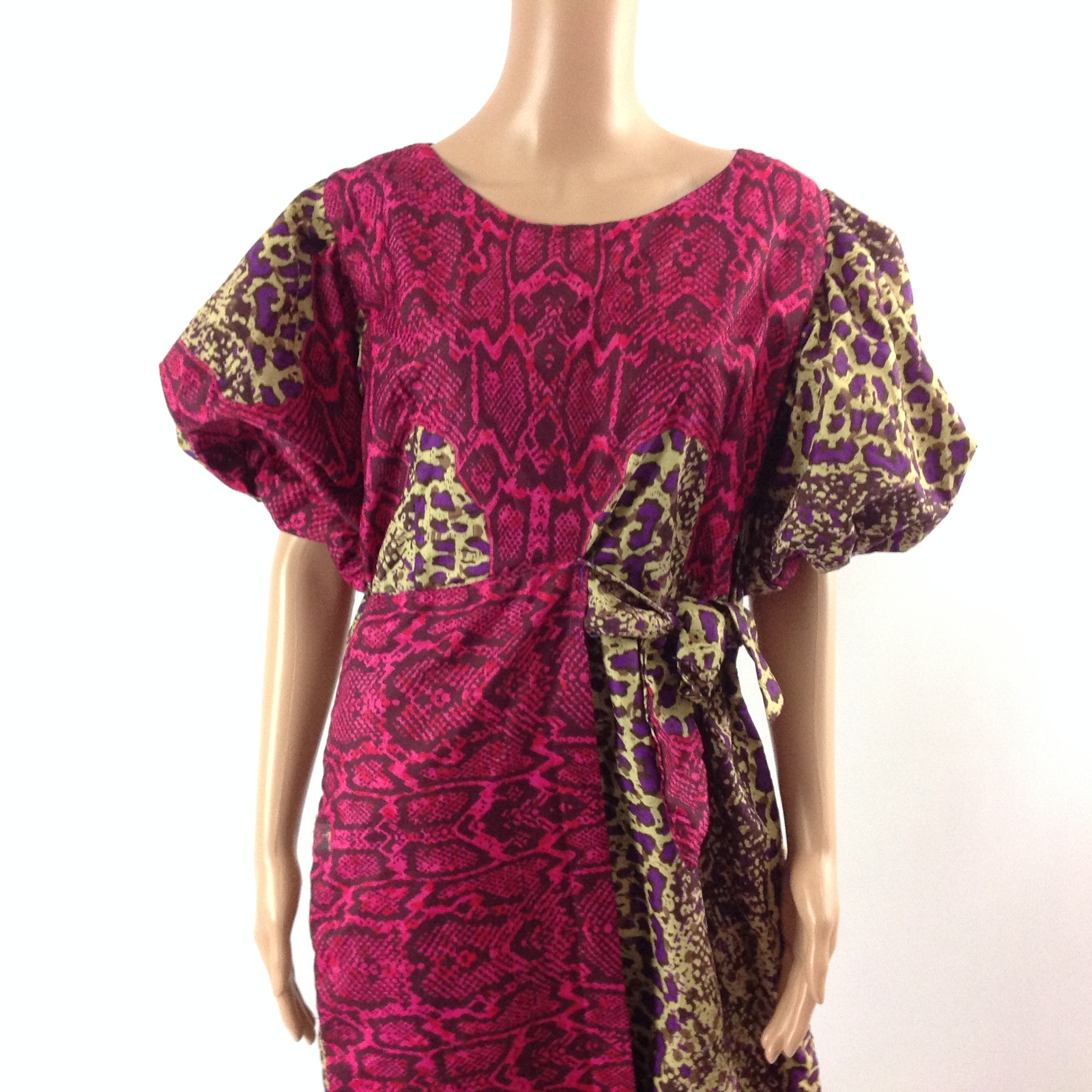 Womens Dress African Animal Print Ankara Asymmetrical Scoop Neck Multi Color L