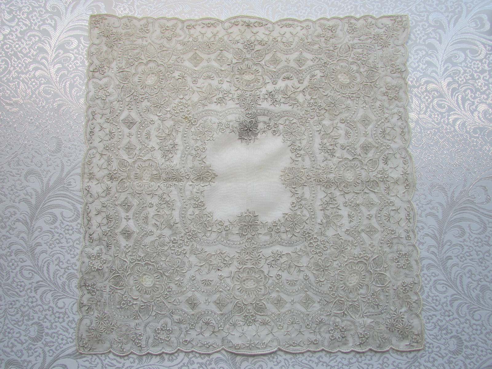 как выглядит Vintage Cream Wedding Hankie Embroidered Open Thread Work фото