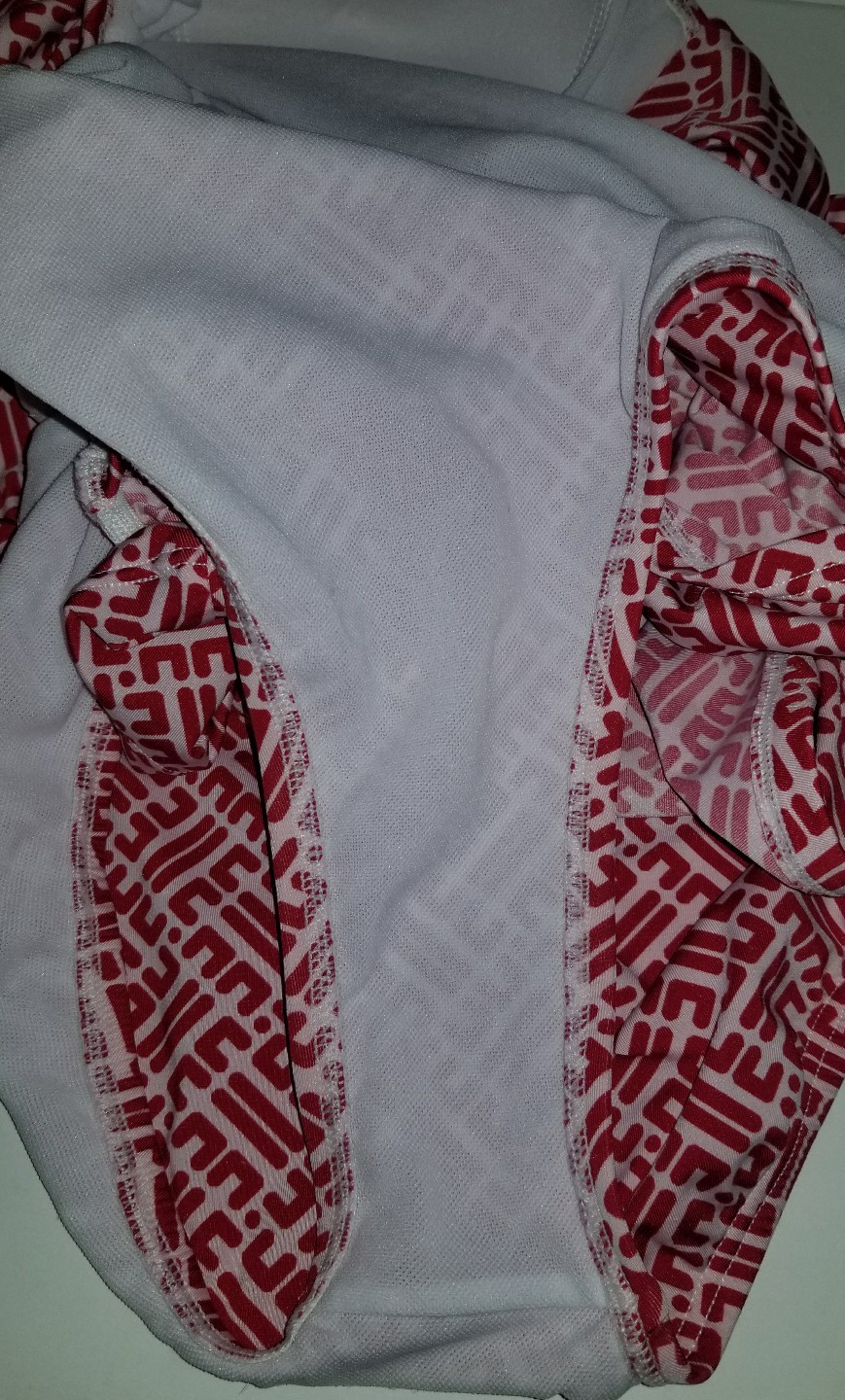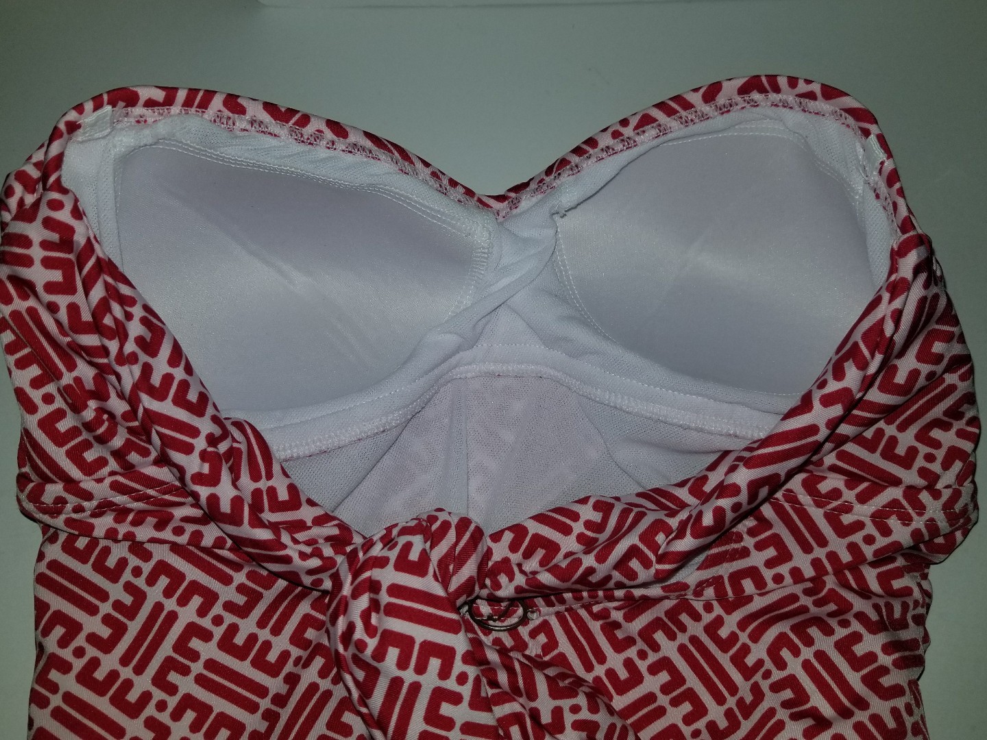 как выглядит Jantzen red white one piece strapless 50s pinup look shirred swimsuit. 8 фото