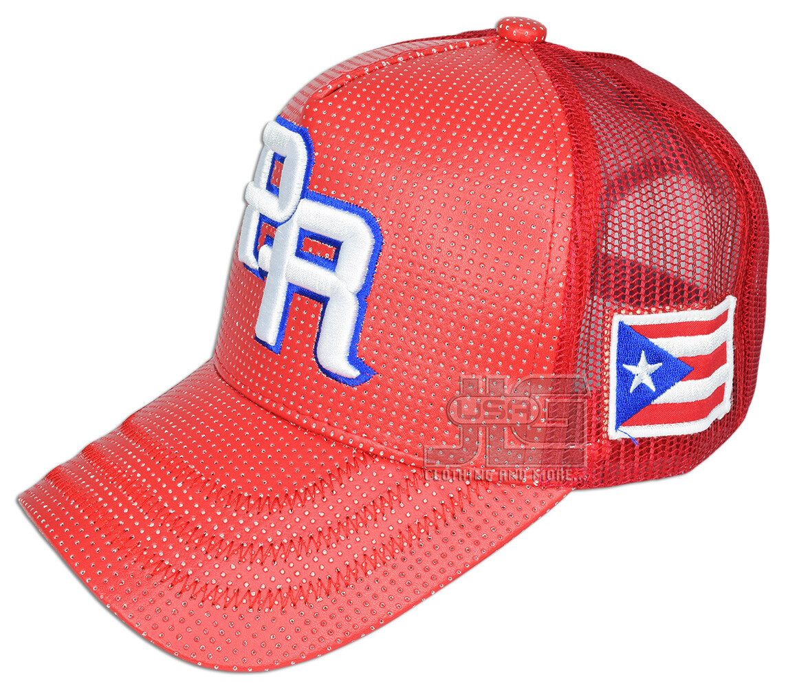 PR Embroidery Puerto Rico Trucker PU Mesh Cap with Puerto Rico Flag Side Cap Hat