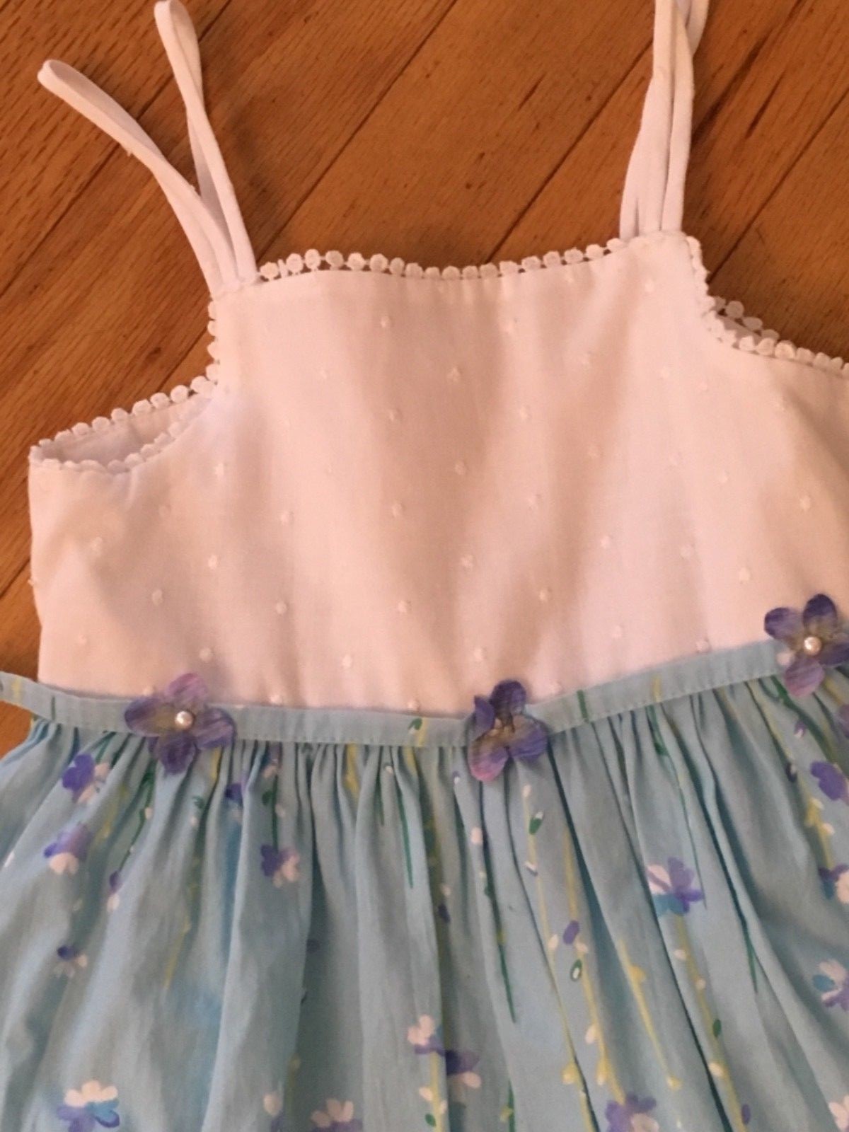 как выглядит TWO TURTLE DOVES by Sweet Potatoes Girls White and Blue Dress Size 4T фото