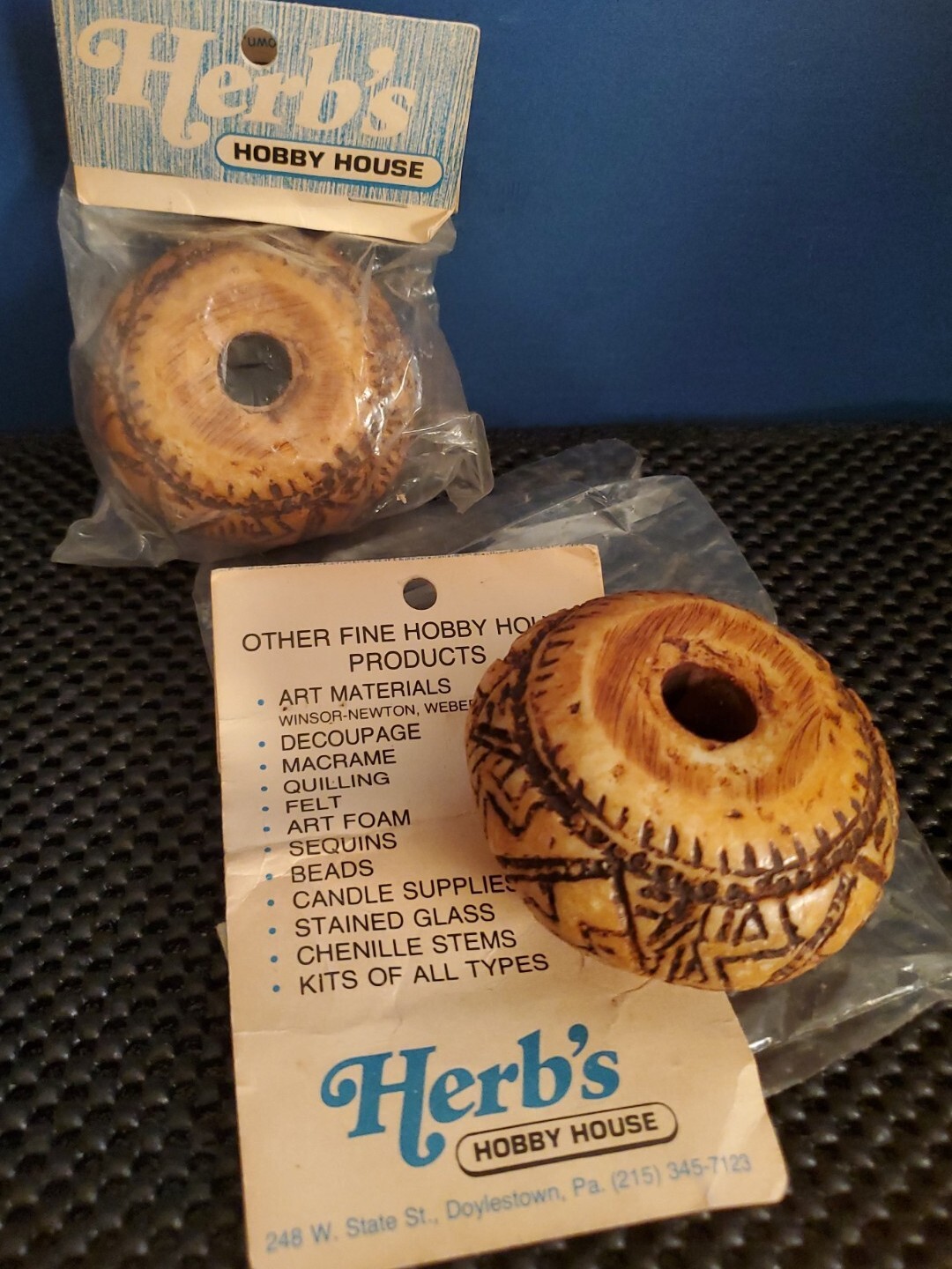 • Vintage 70's Macrame Beads 3" Yarn Crafts Weighted Cast Resin New Sealed Pkg