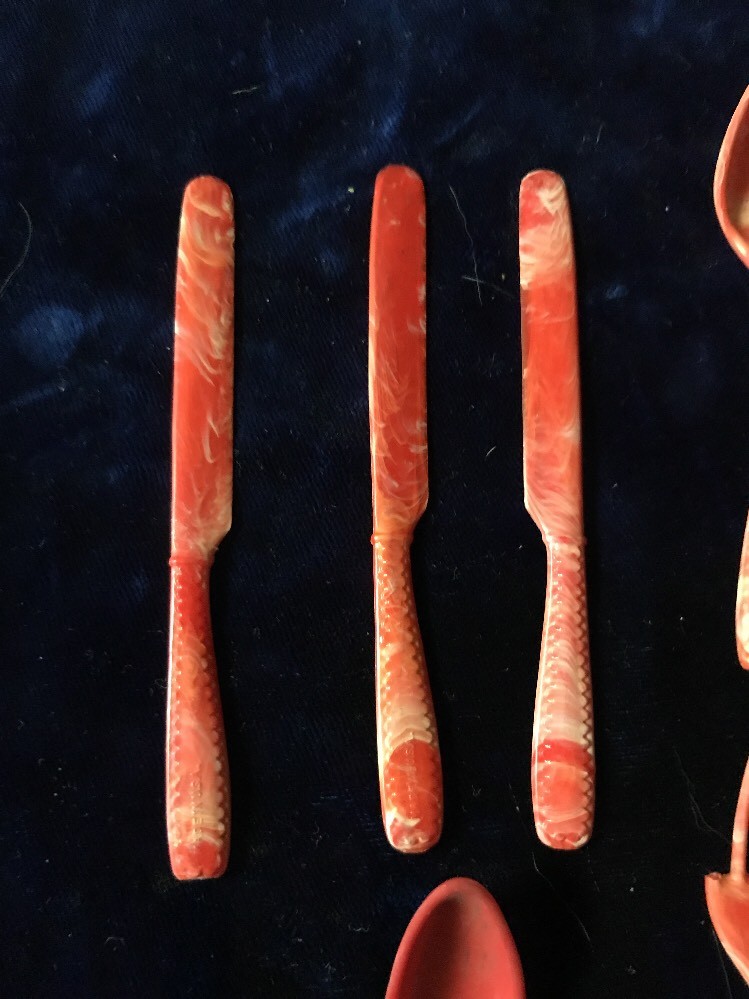 12pc Ideal Plastic Childs Silverware Red Marble