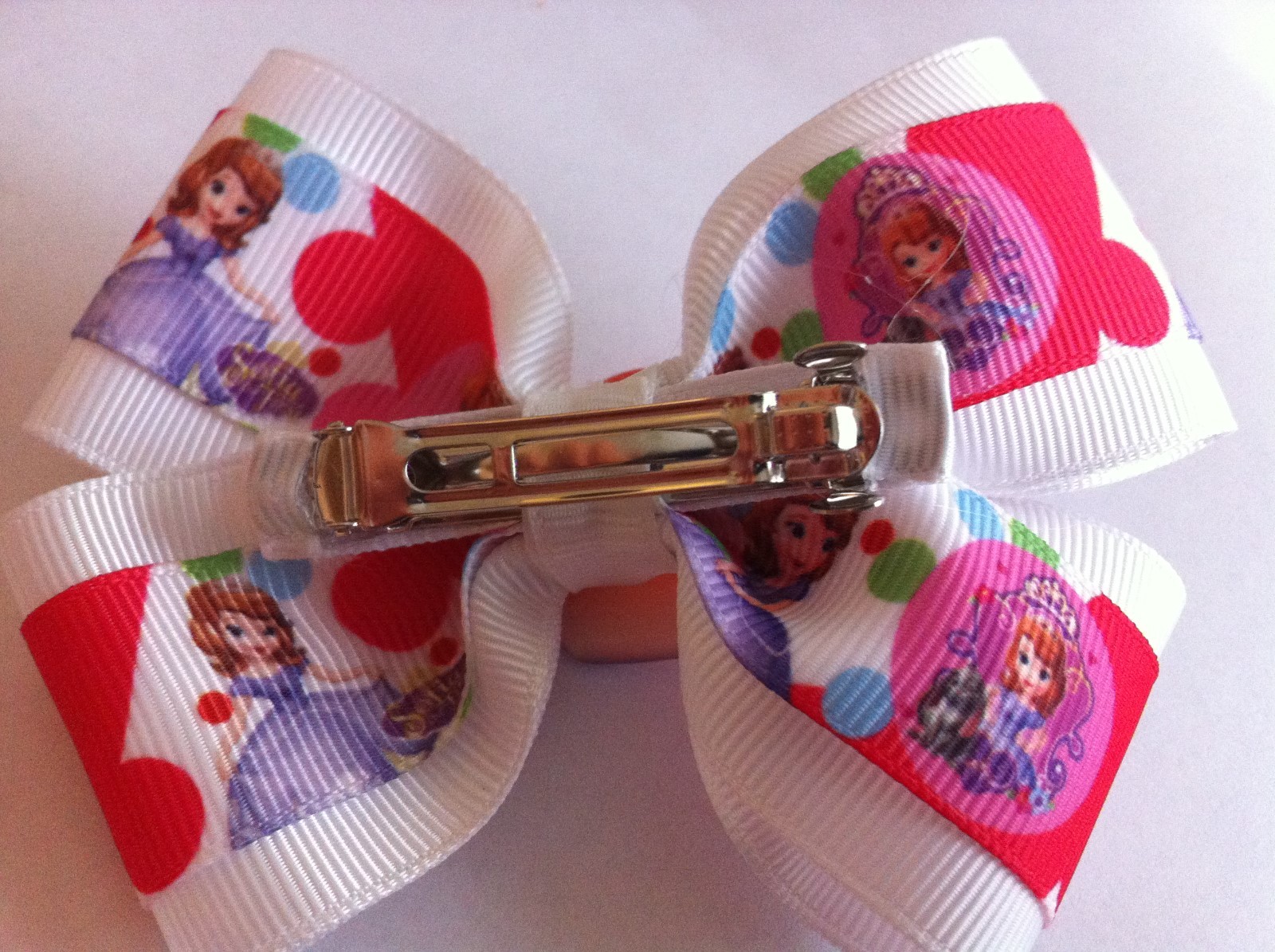 Girls Hair Bow 4 Wide Sofia the First Ribbon White Grosgrain French Barrette