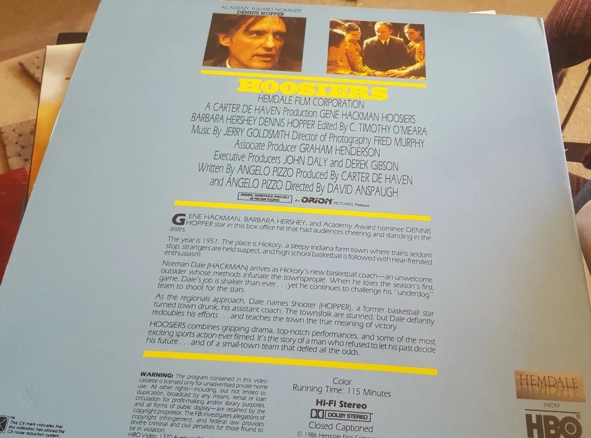 Hoosiers Laserdisc Gene Hackman Stars Very Good Condition