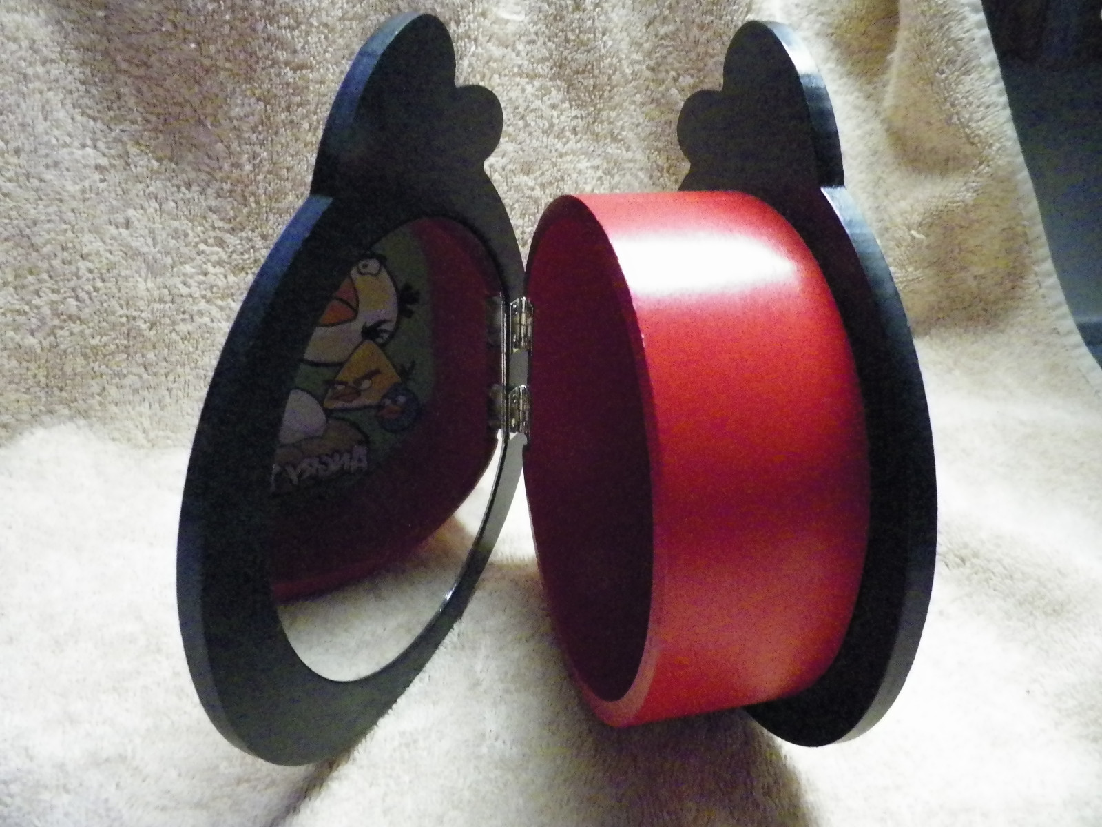 RED Angry Birds Wood Trinket Box by Jacmel with Mirror under Lid Jewelry