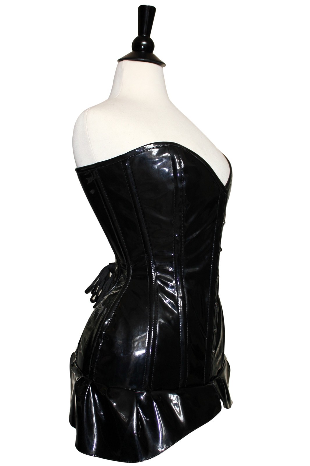 как выглядит Black Pvc Steel Bones Lace up Back Full Bust Sweetheart Skirt Corset 2XS 7XL фото