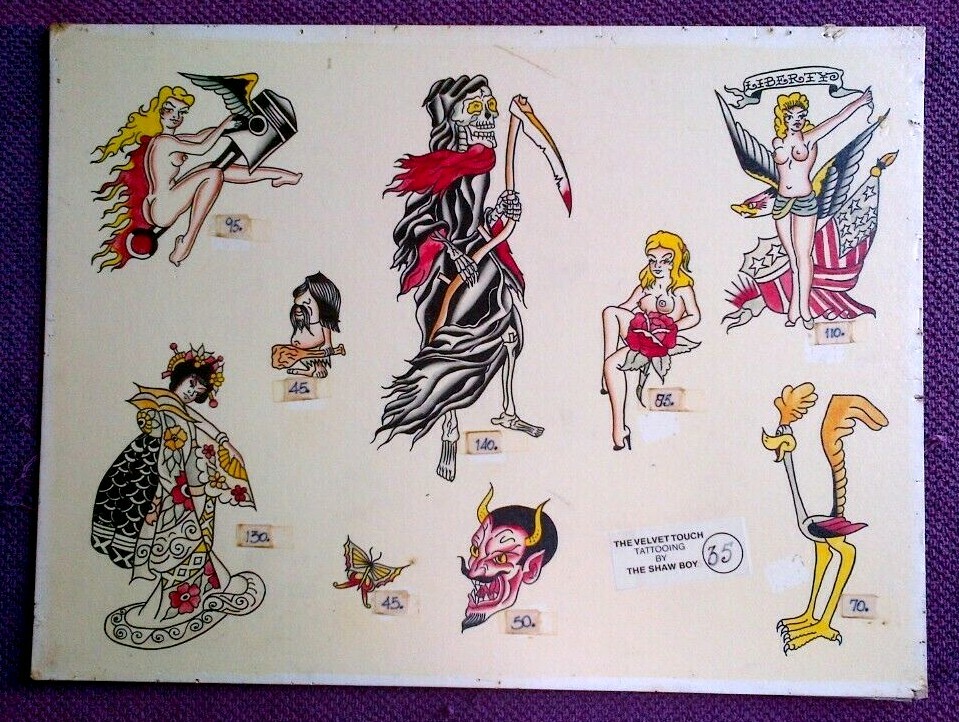 как выглядит BOB SHAW TATTOO LEGEND - LARGE VINTAGE ORIGINAL HAND PAINTED TATTOO FLASH фото