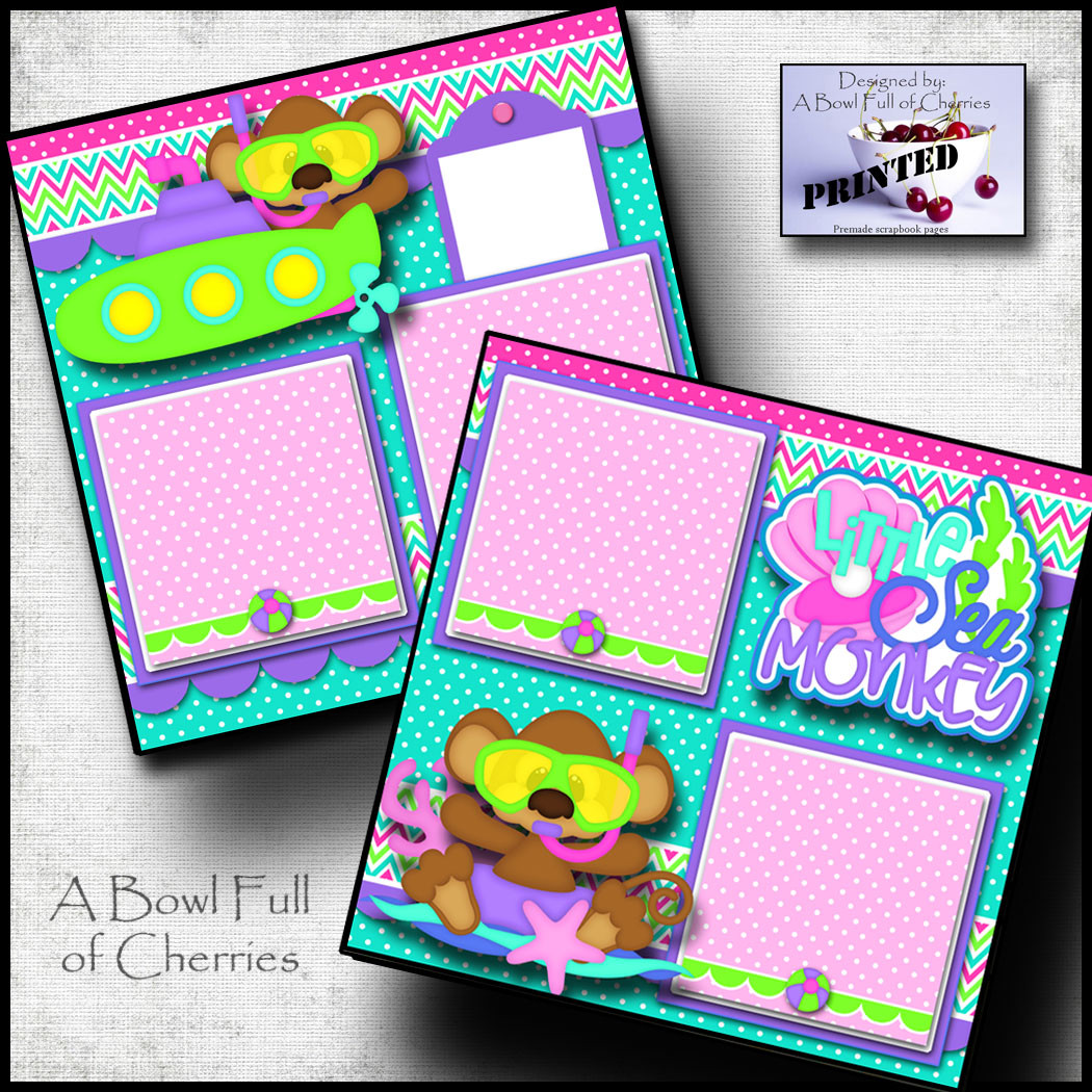 LITTLE SEA MONKEY 2 premade scrapbook pages paper piecing beach CHERRY 0004
