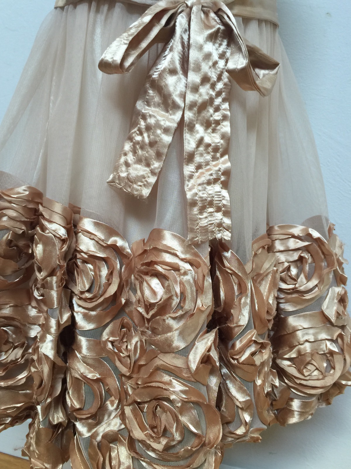 как выглядит Flower Girl 7 PARTY DRESS Mesh Tulle Net BONNIE JEAN Shimmery MOCHA SATIN ROSE фото
