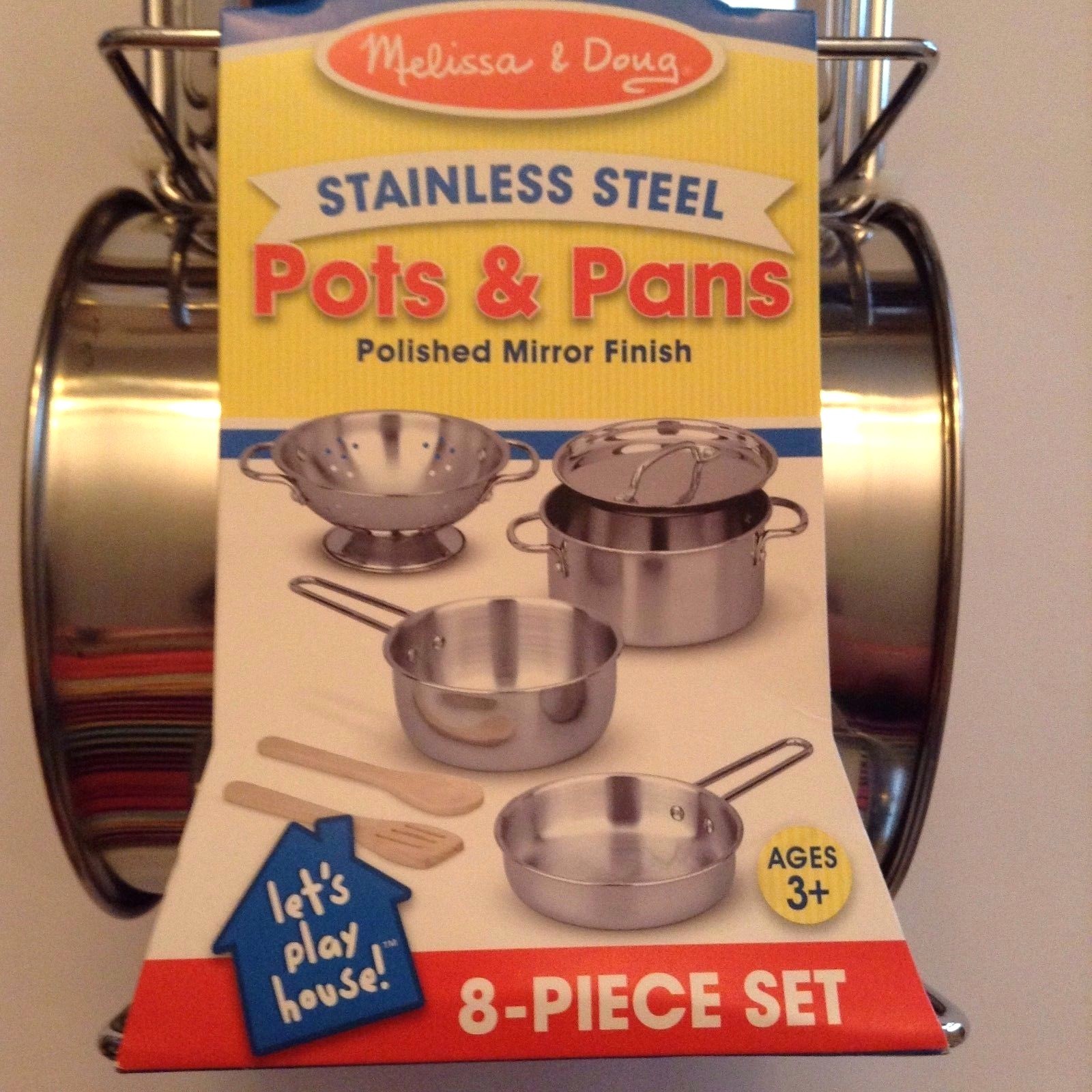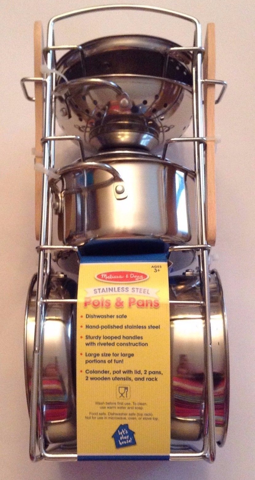 как выглядит New Sealed Melissa Doug 8-Piece Stainless Steel Pots and Pans Playset for Kids фото