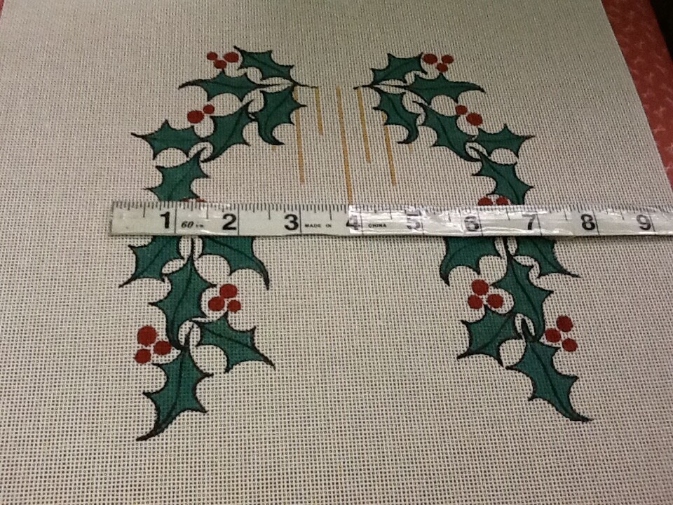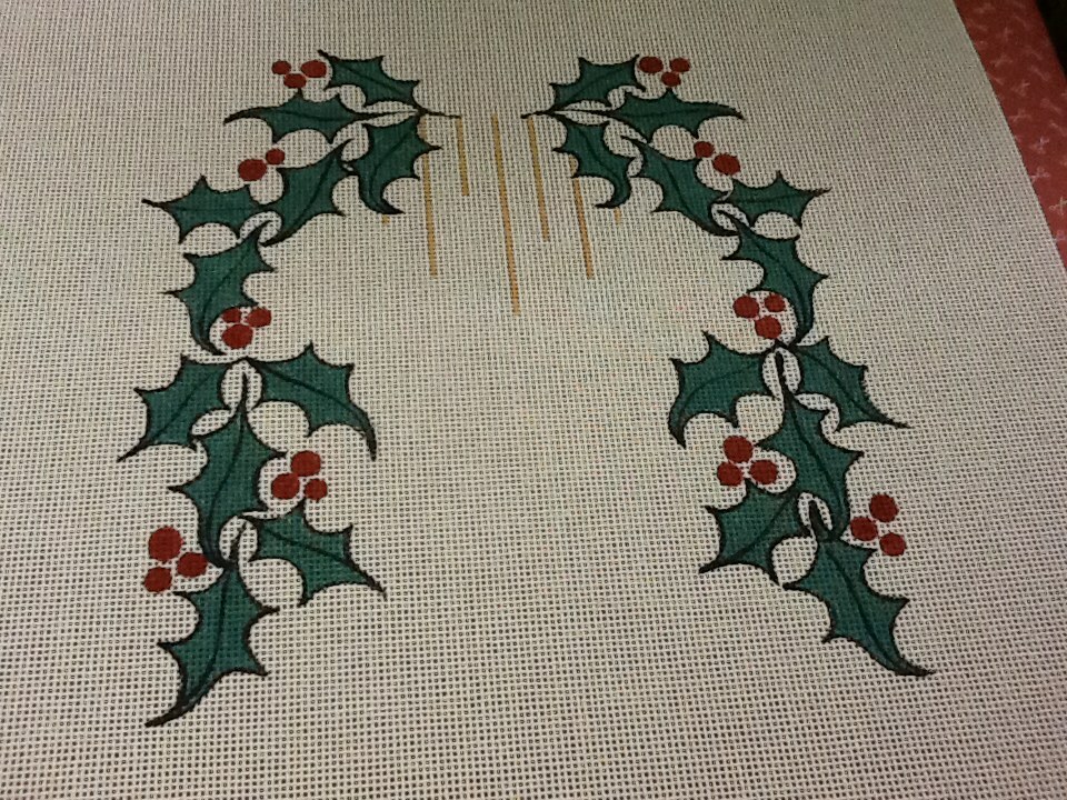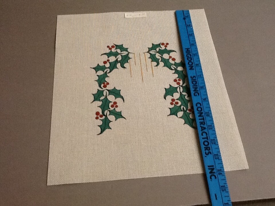 Handpainted Christmas Holly Garland Needlepoint on 18 Canvas X20